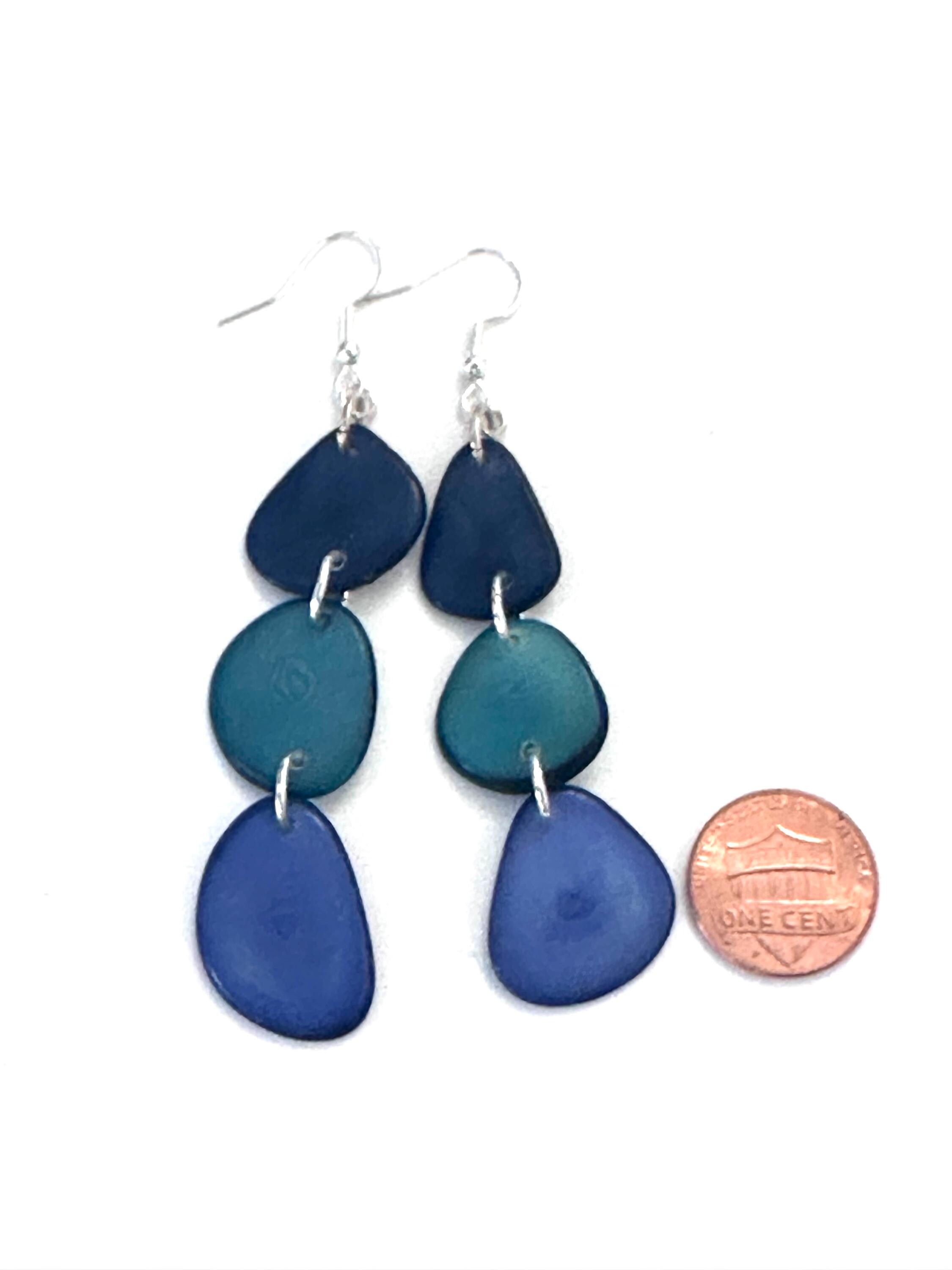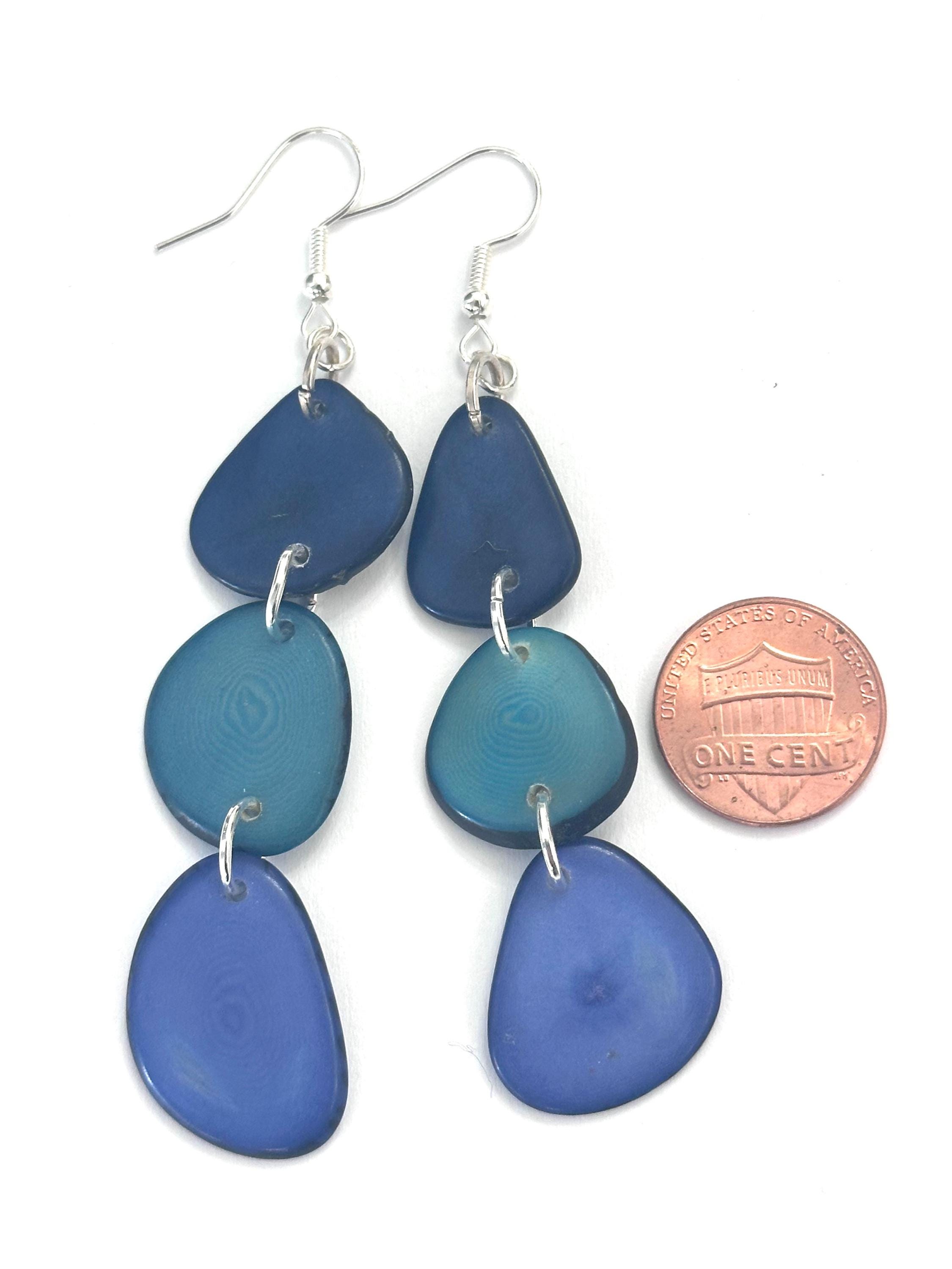 These earrings are made from Tagua slices hang on silver toned ear wire.
