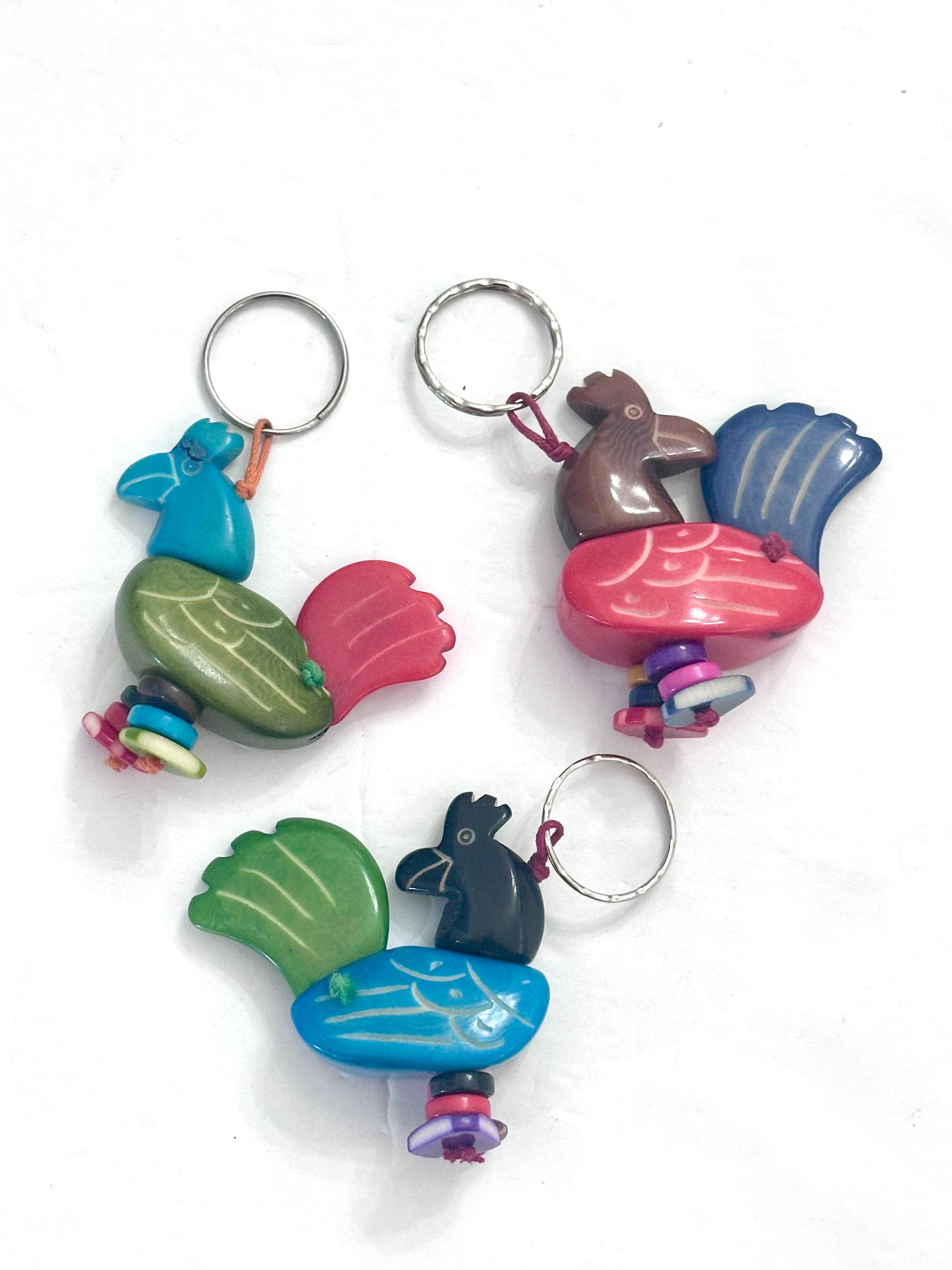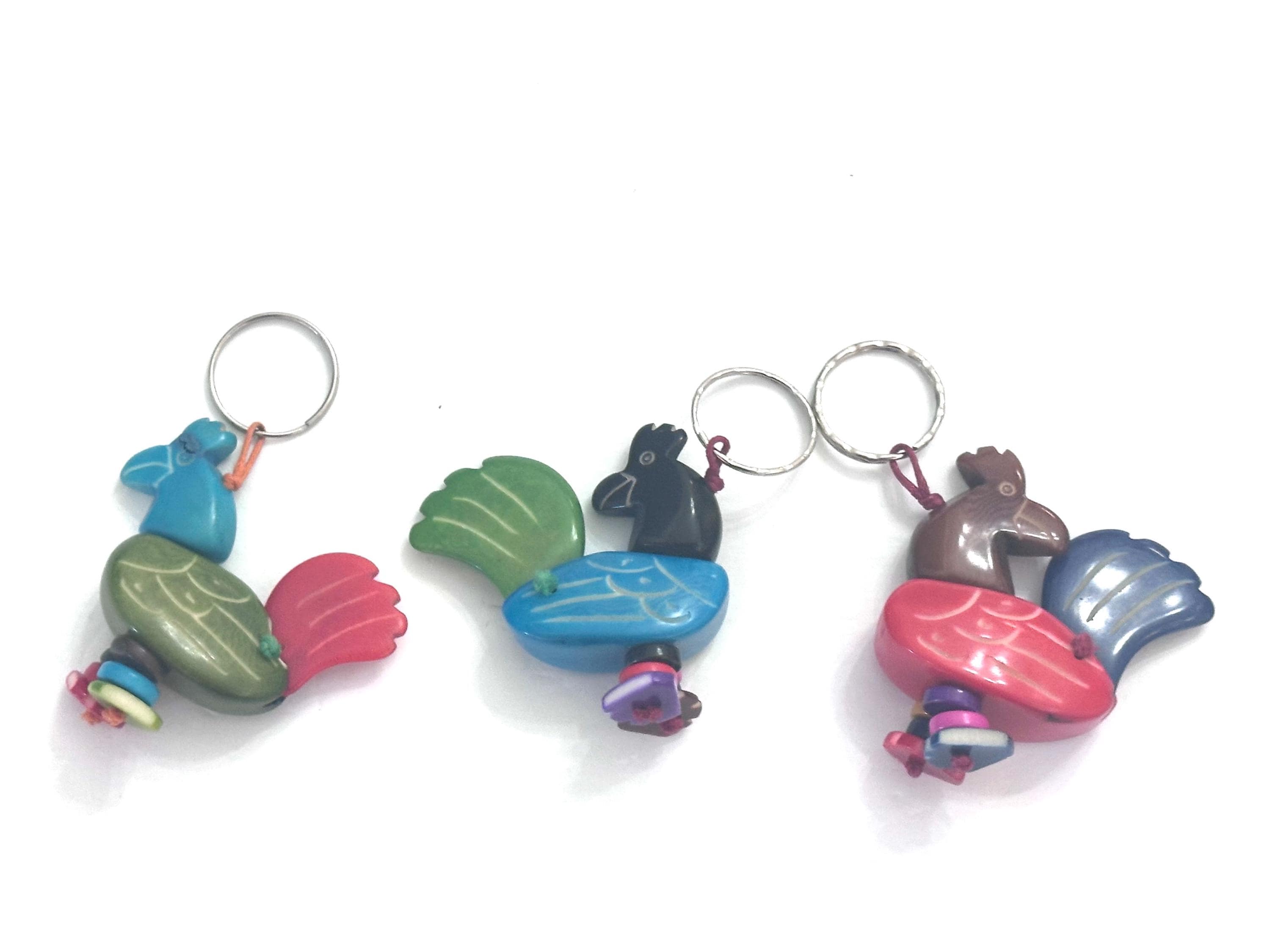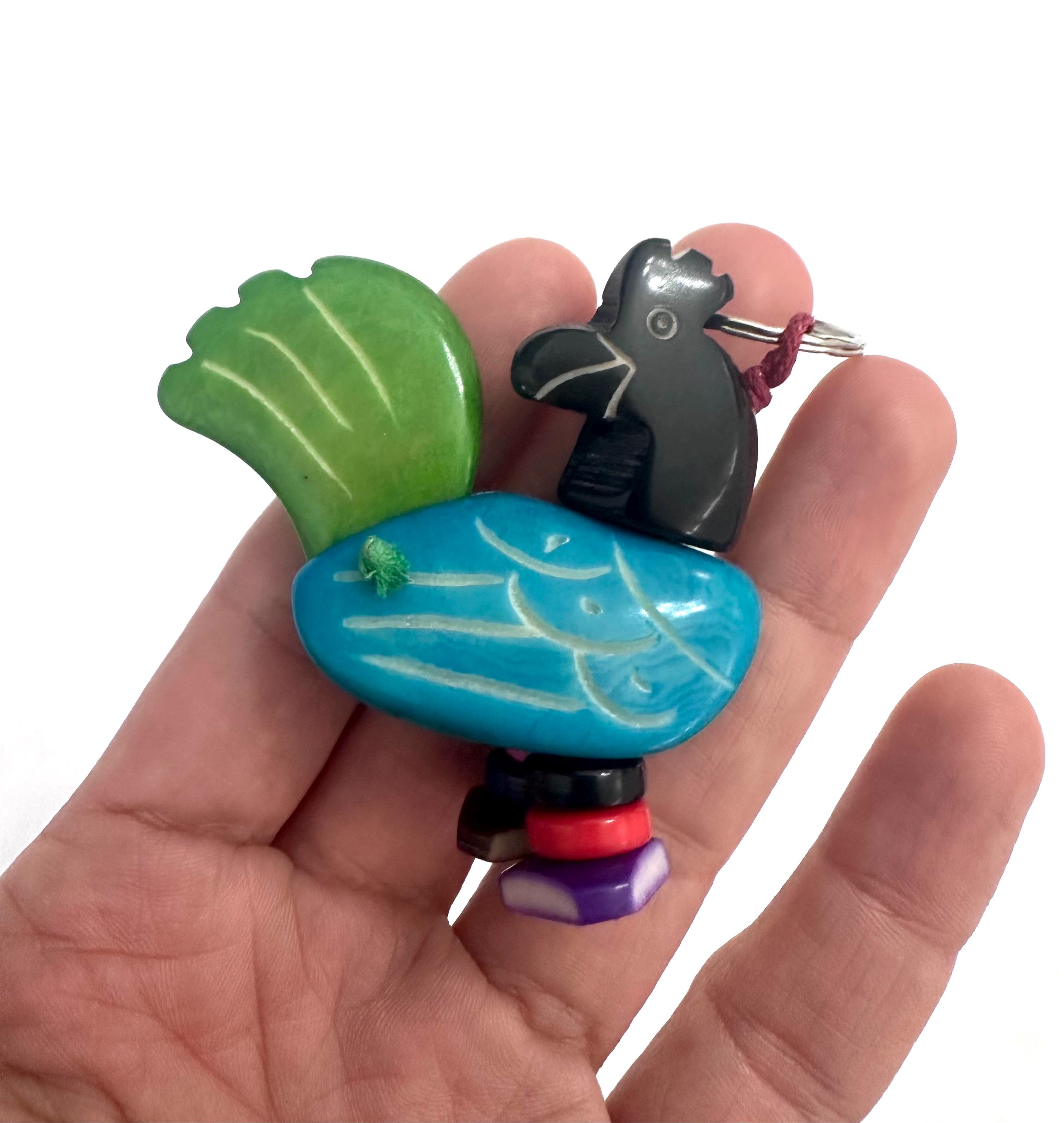It is made with 100 % tagua, known as vegetable ivory, a seed from a palm tree that grows in tropical regions of South America. When ripe the nuts fall to the ground and are gathered and dried for a period of up to 2 years after which they become extremely hard (ivory like). The tagua seed is cut into different shapes and dyed in a variety of different natural colors, revealing the veins of the pure cellulose material giving each piece an individual and natural look.