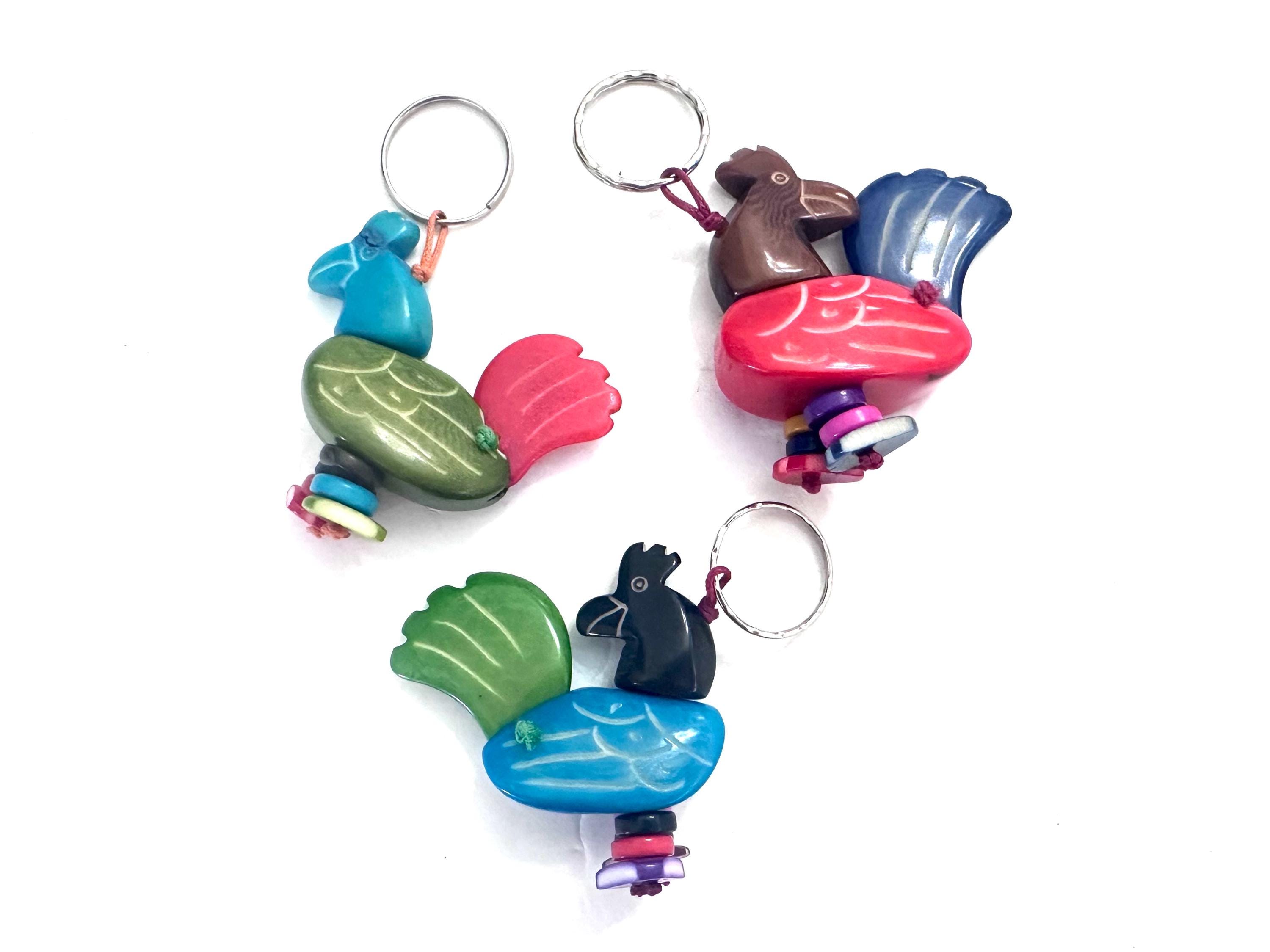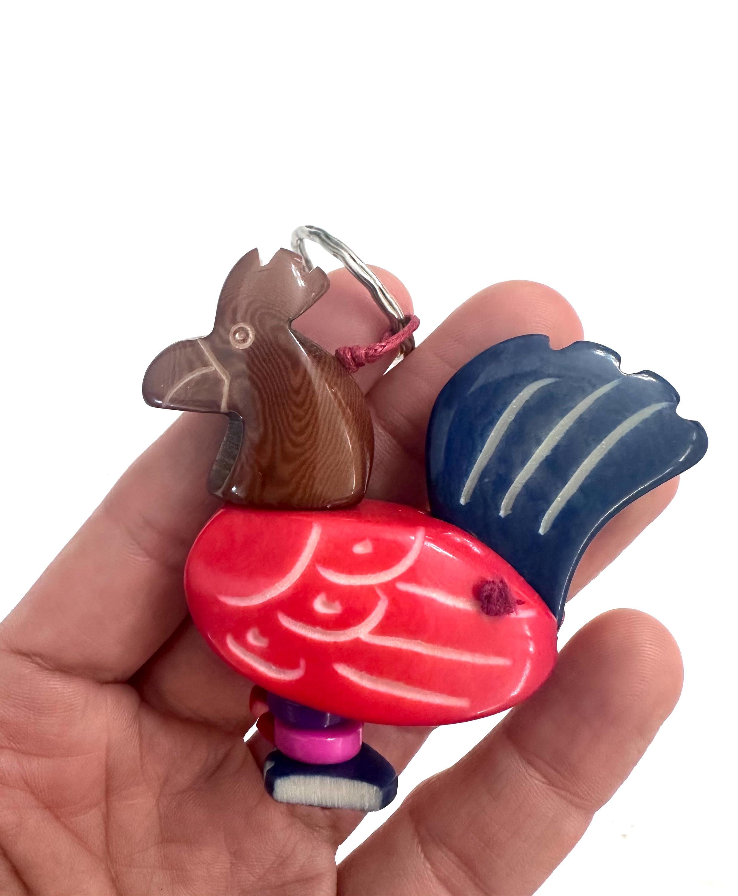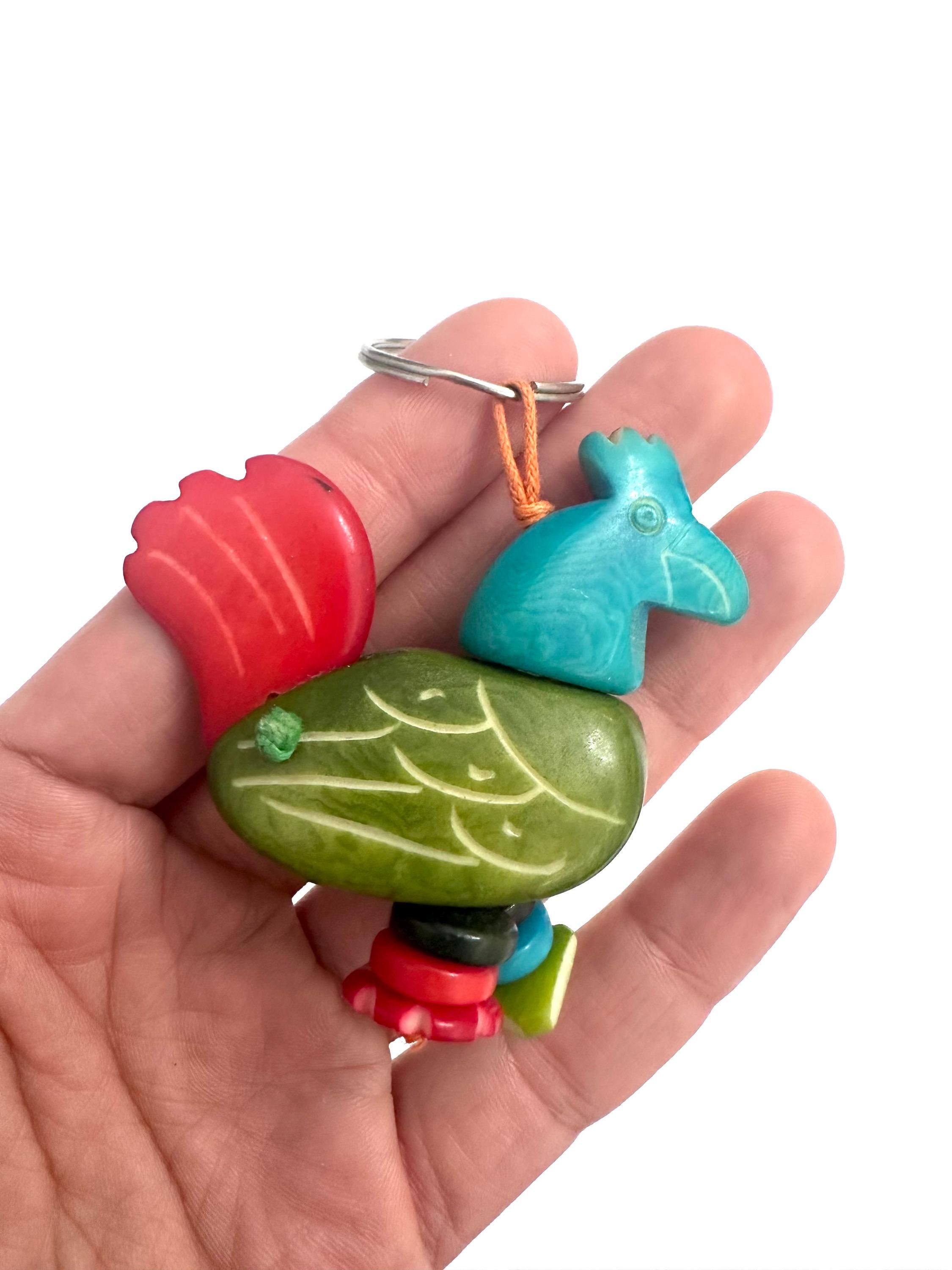 It is made with 100 % tagua, known as vegetable ivory, a seed from a palm tree that grows in tropical regions of South America. When ripe the nuts fall to the ground and are gathered and dried for a period of up to 2 years after which they become extremely hard (ivory like). The tagua seed is cut into different shapes and dyed in a variety of different natural colors, revealing the veins of the pure cellulose material giving each piece an individual and natural look.