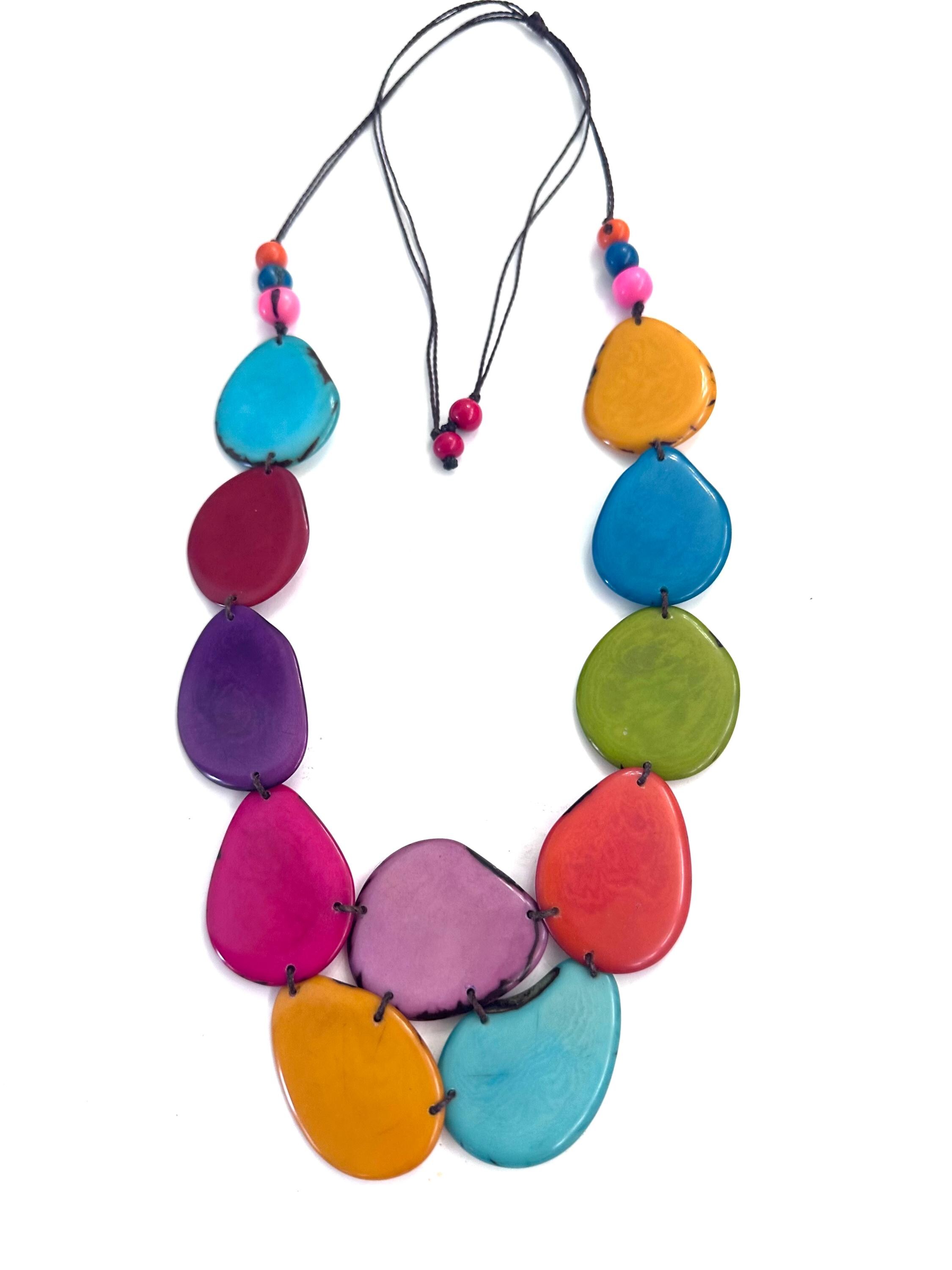 Beautiful rain-forest necklace in a variety of vibrant colors.