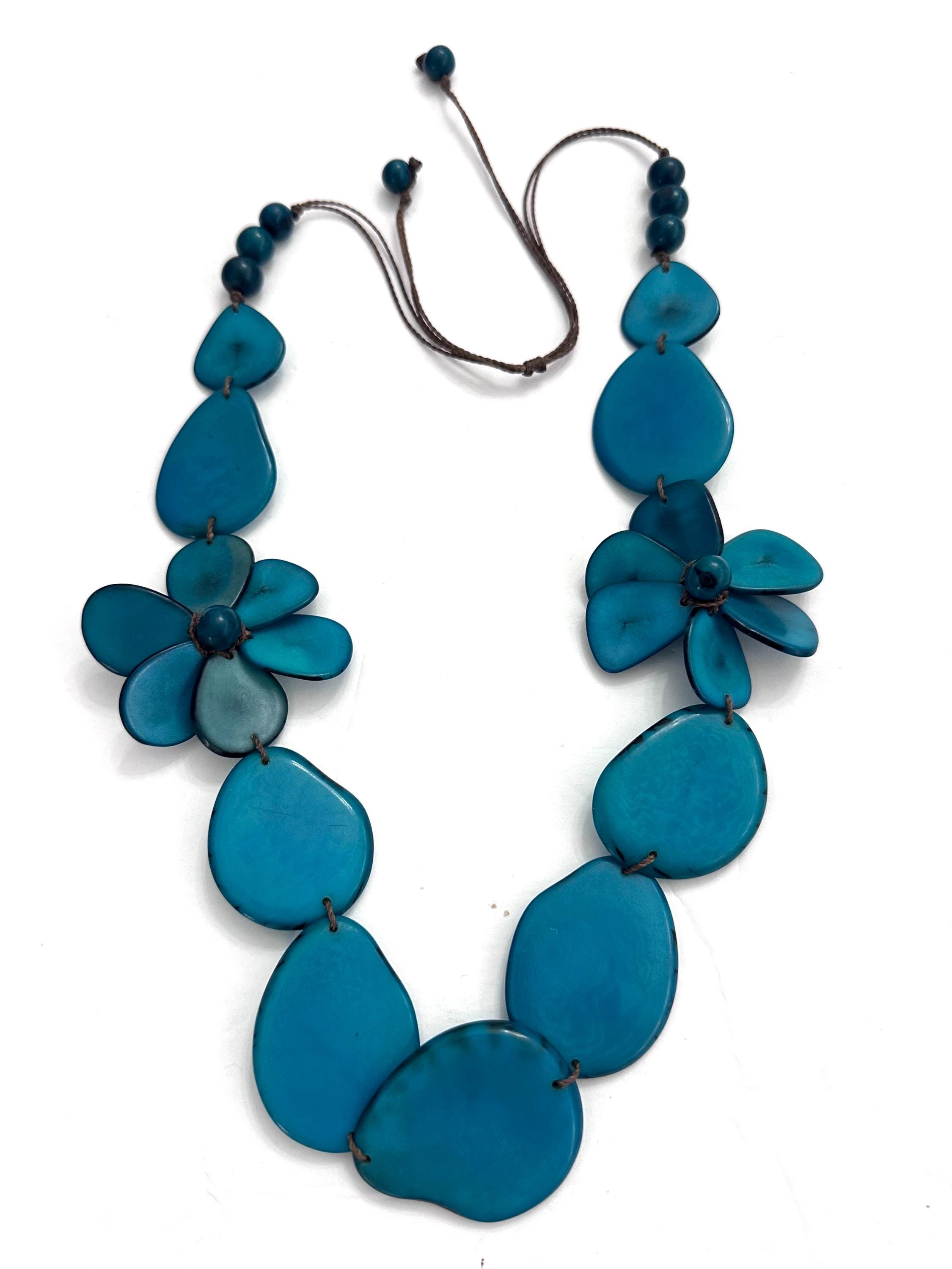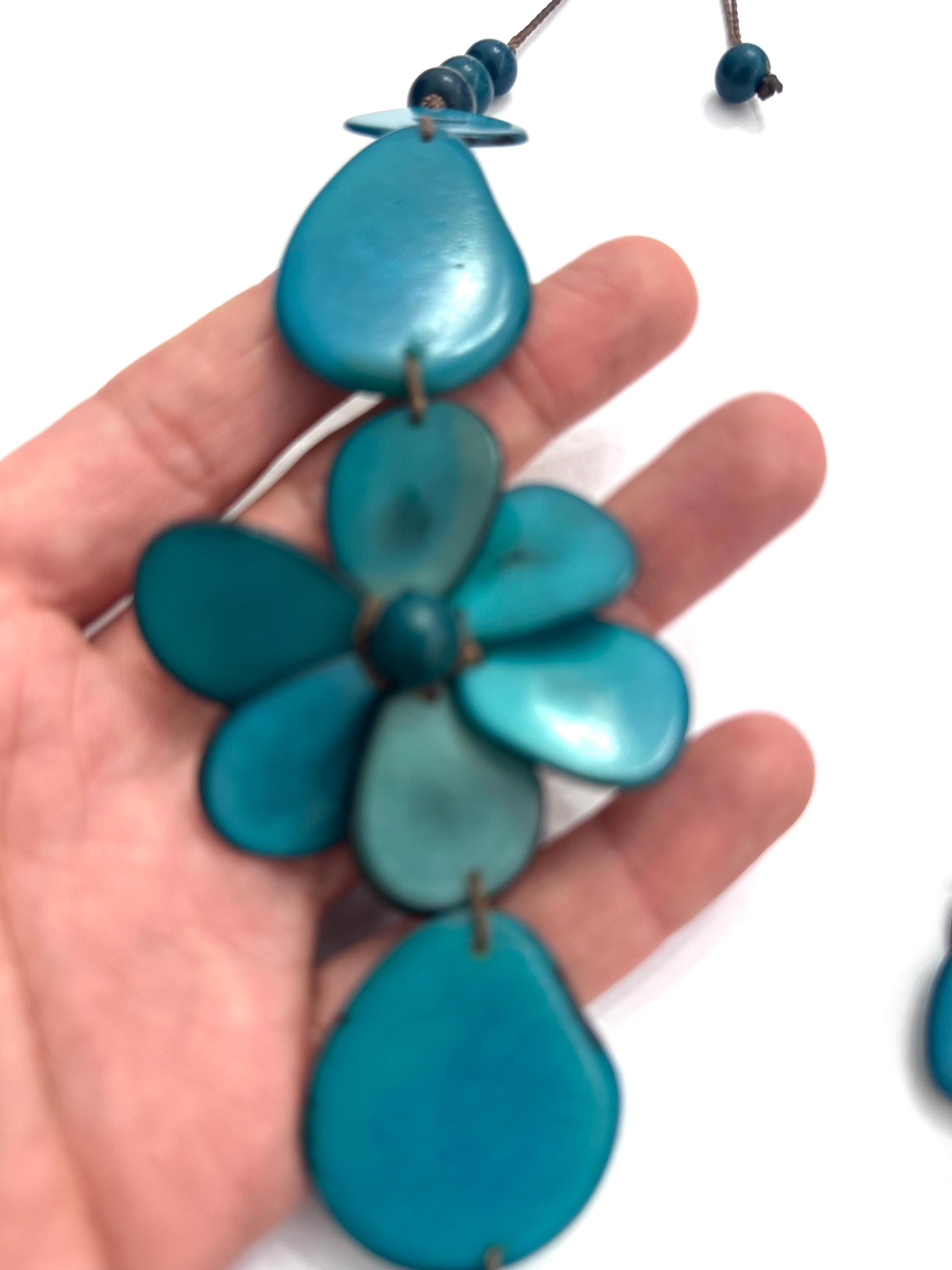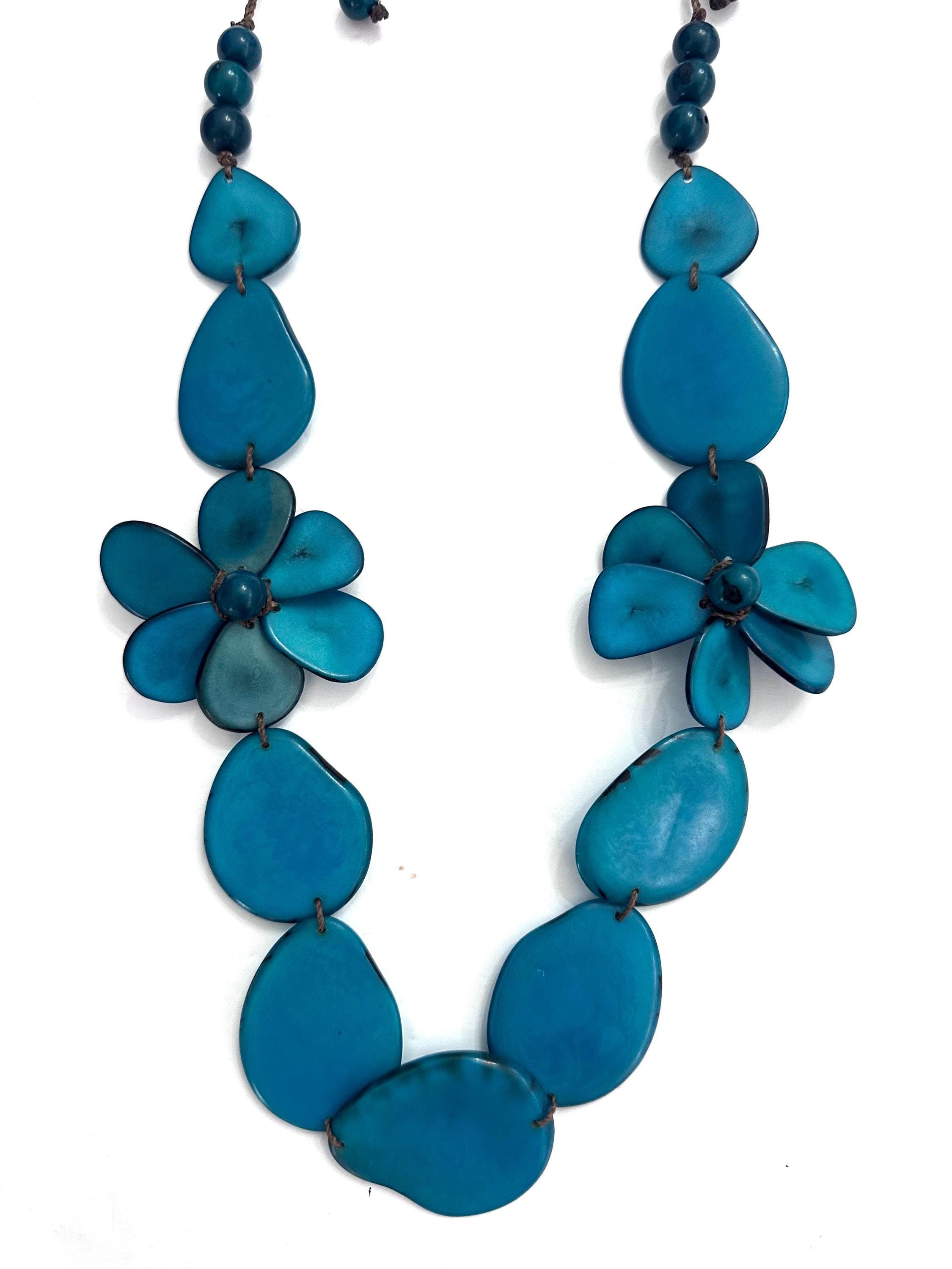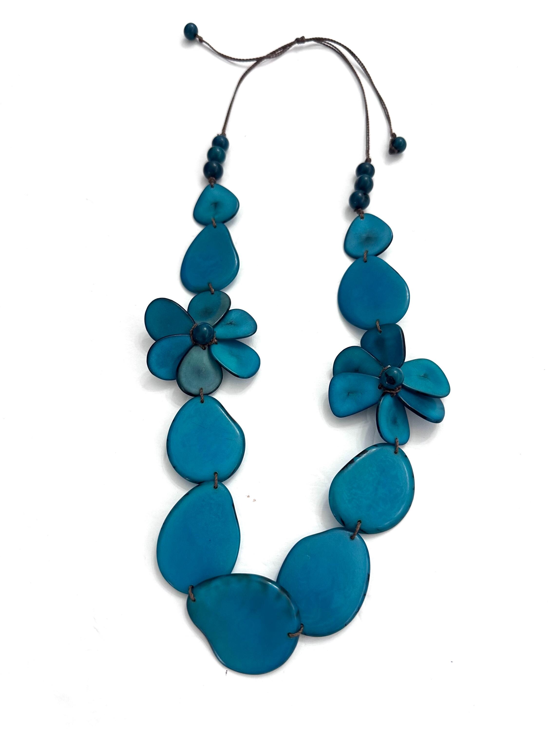 Statement Tagua Necklace, it features two beautiful flowers made with tagua slices petals on an adjustable string.