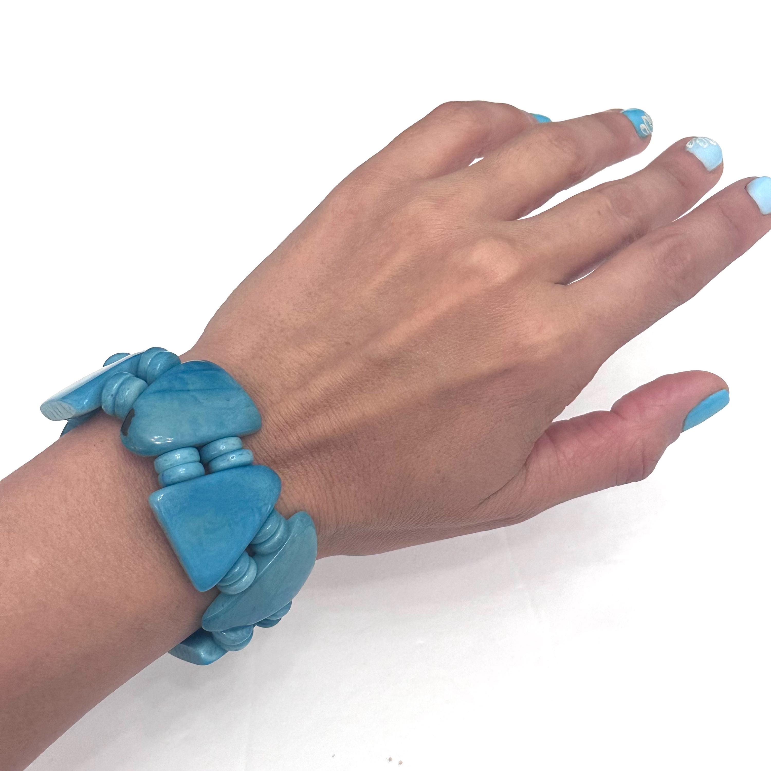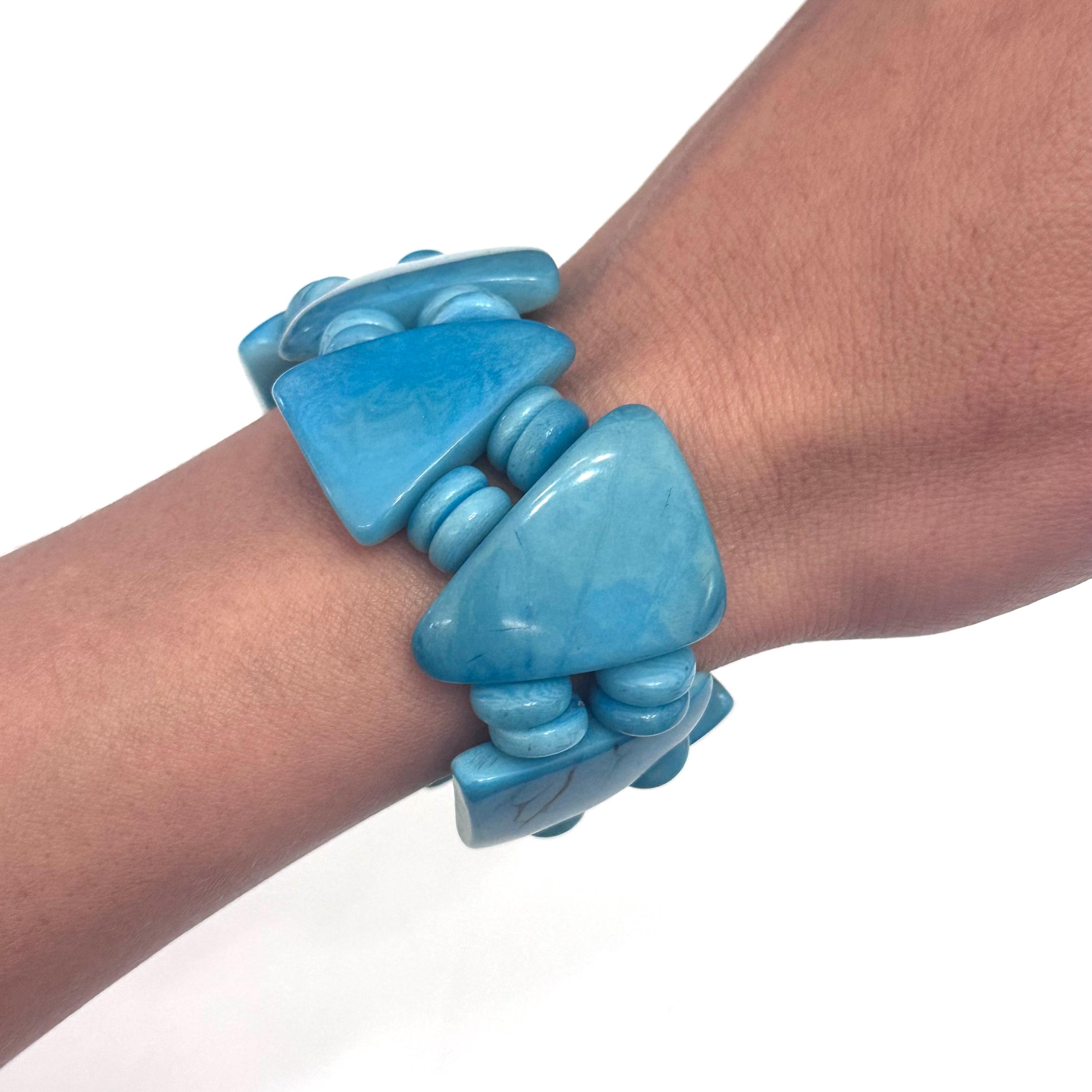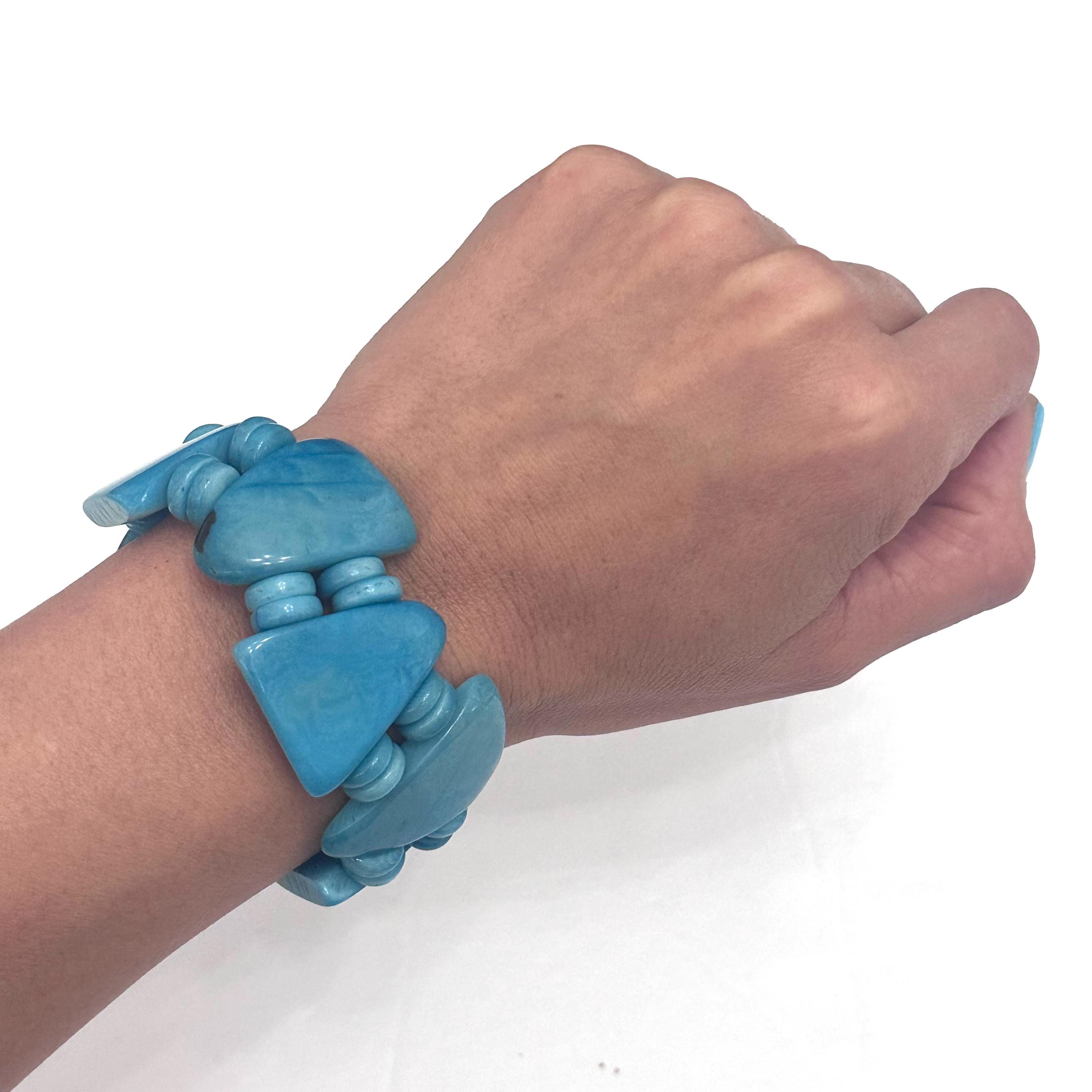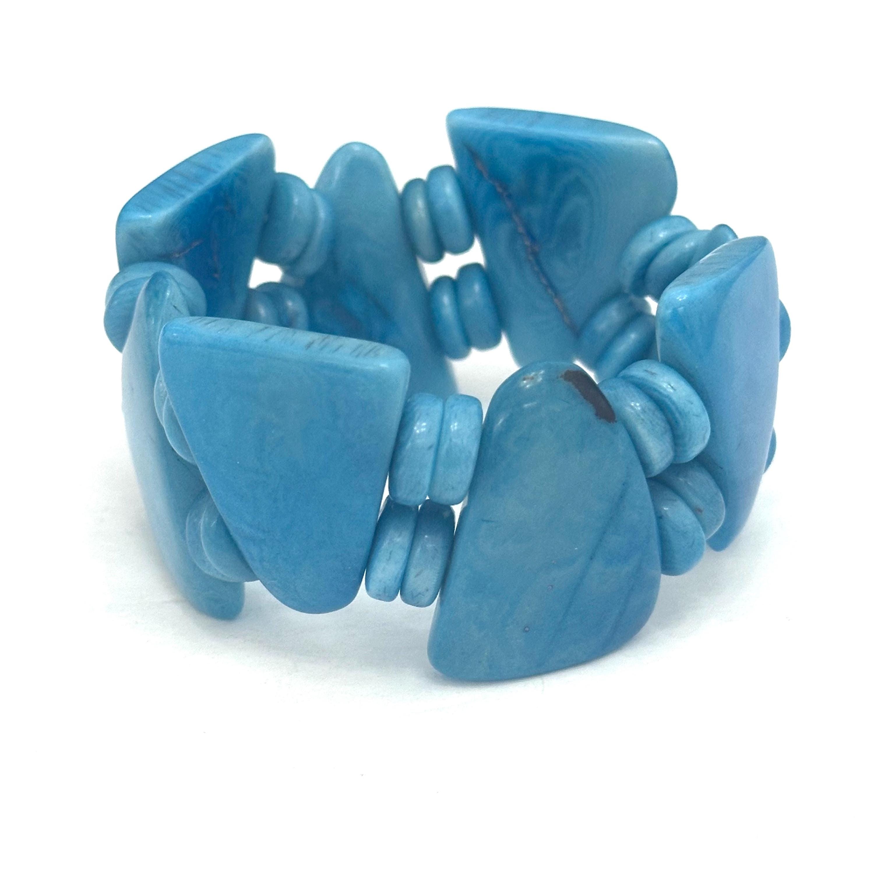 Gorgeously and naturally dyed tagua nut beads are strung together on a durable elastic strand for vivid one-size-fits-all style.