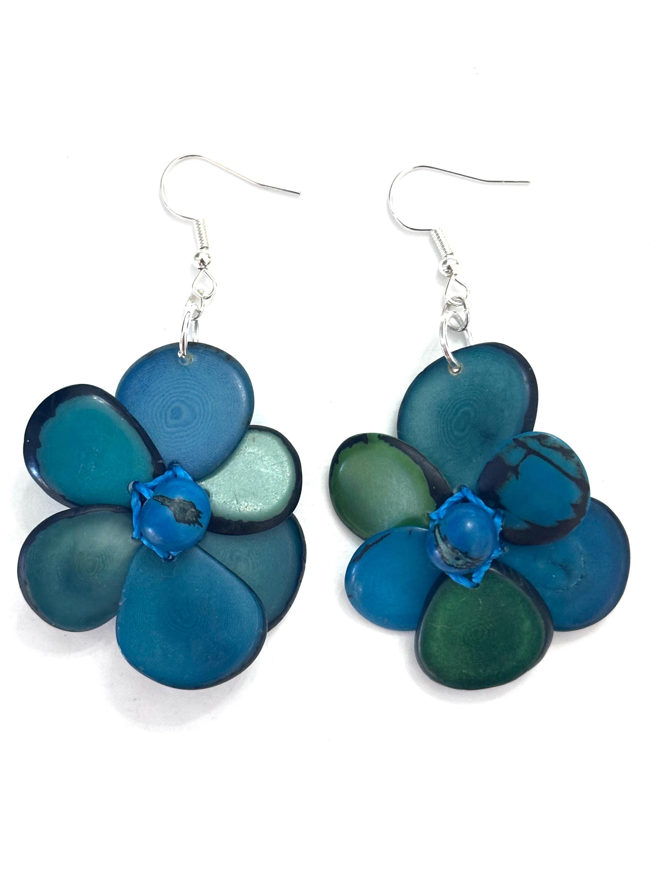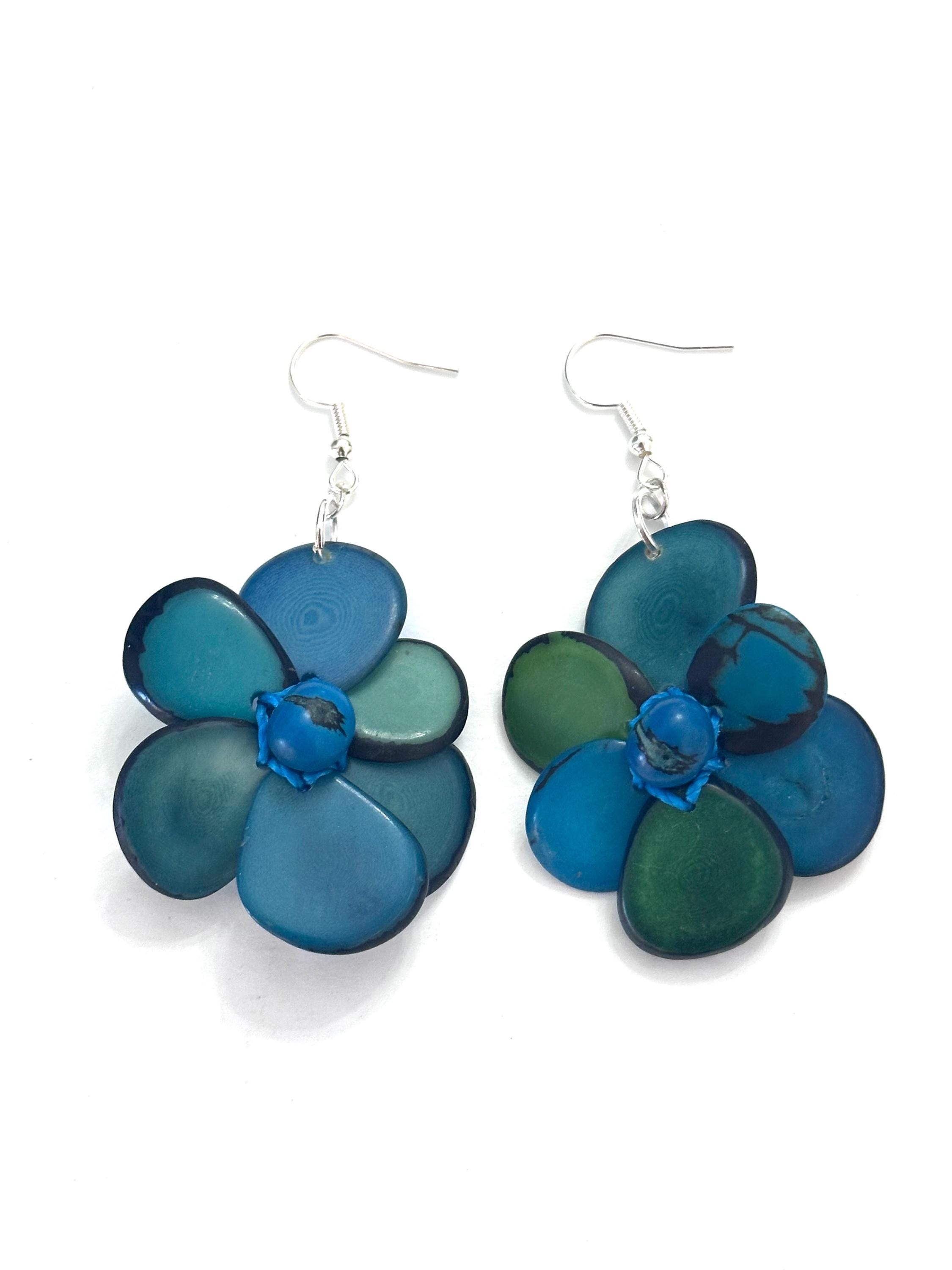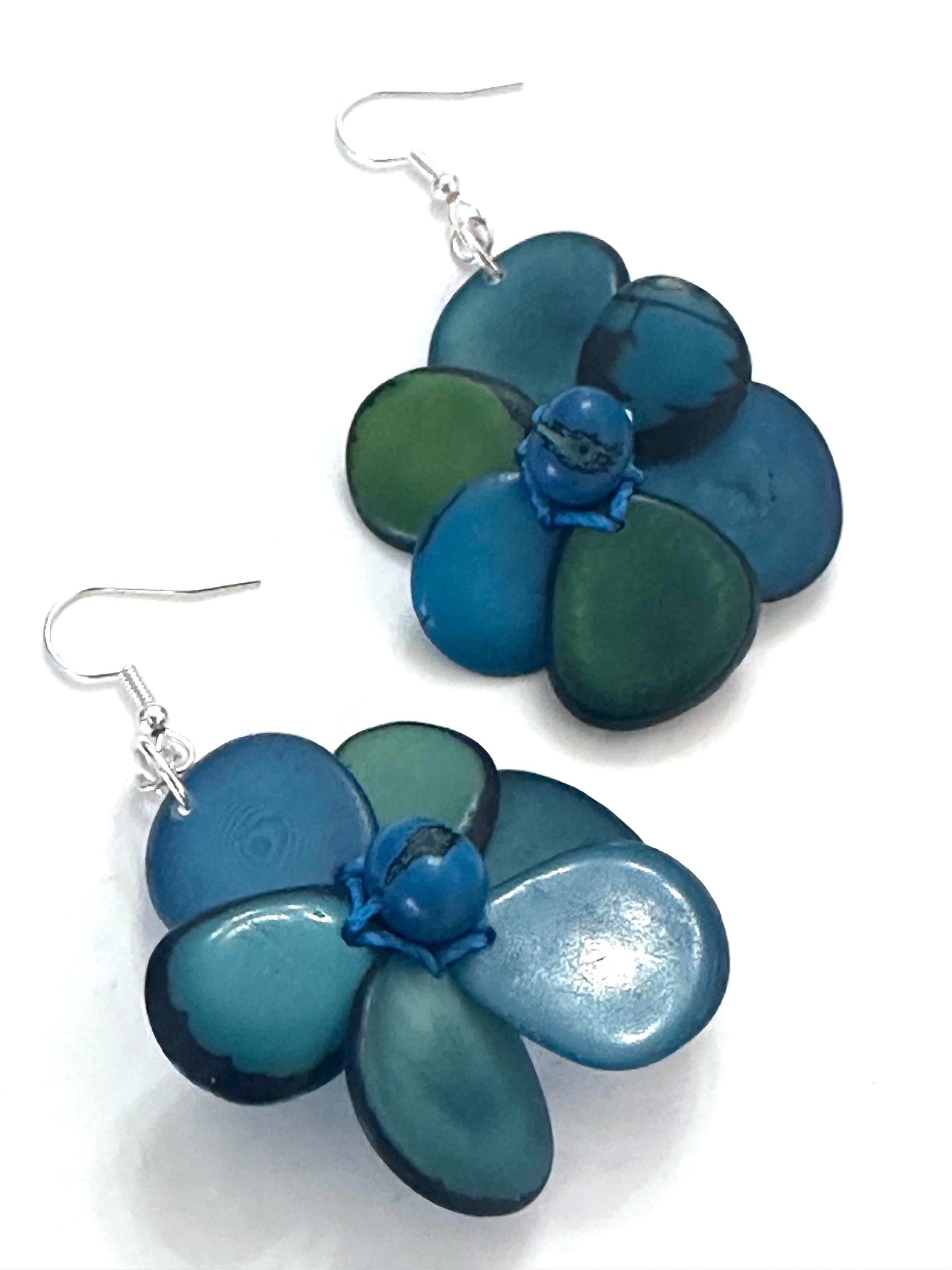 Tagua Nut Flower Design Earrings.