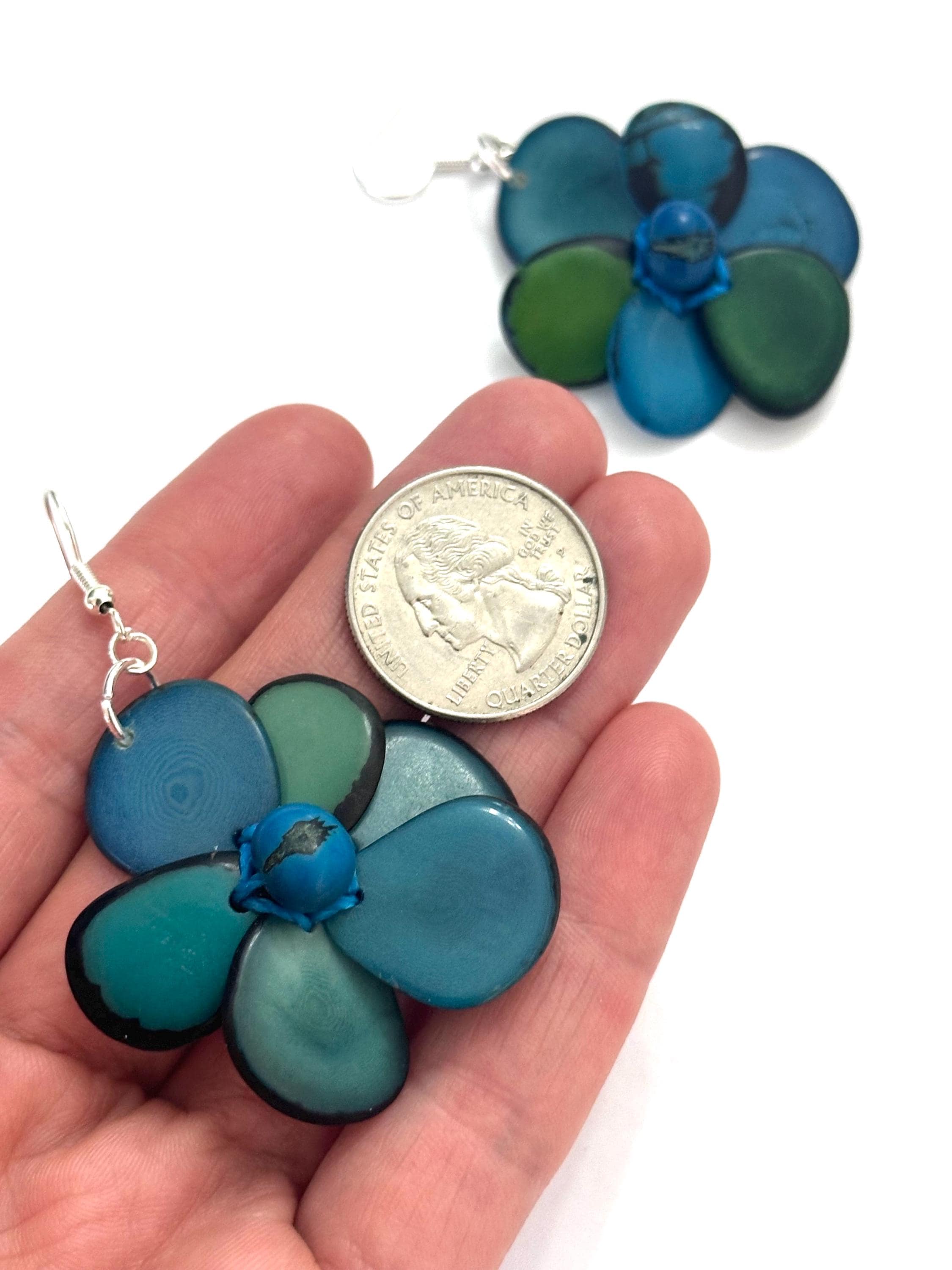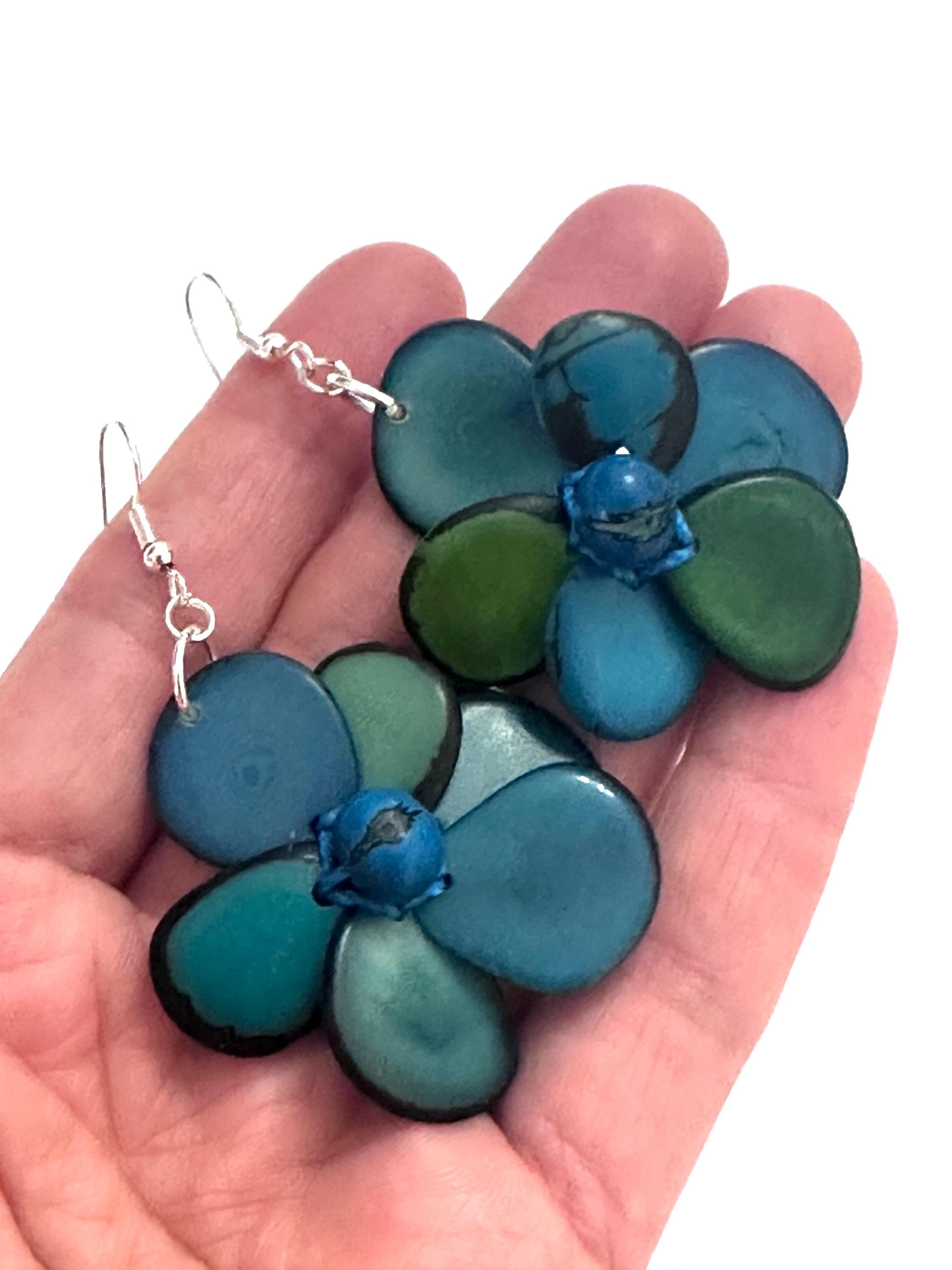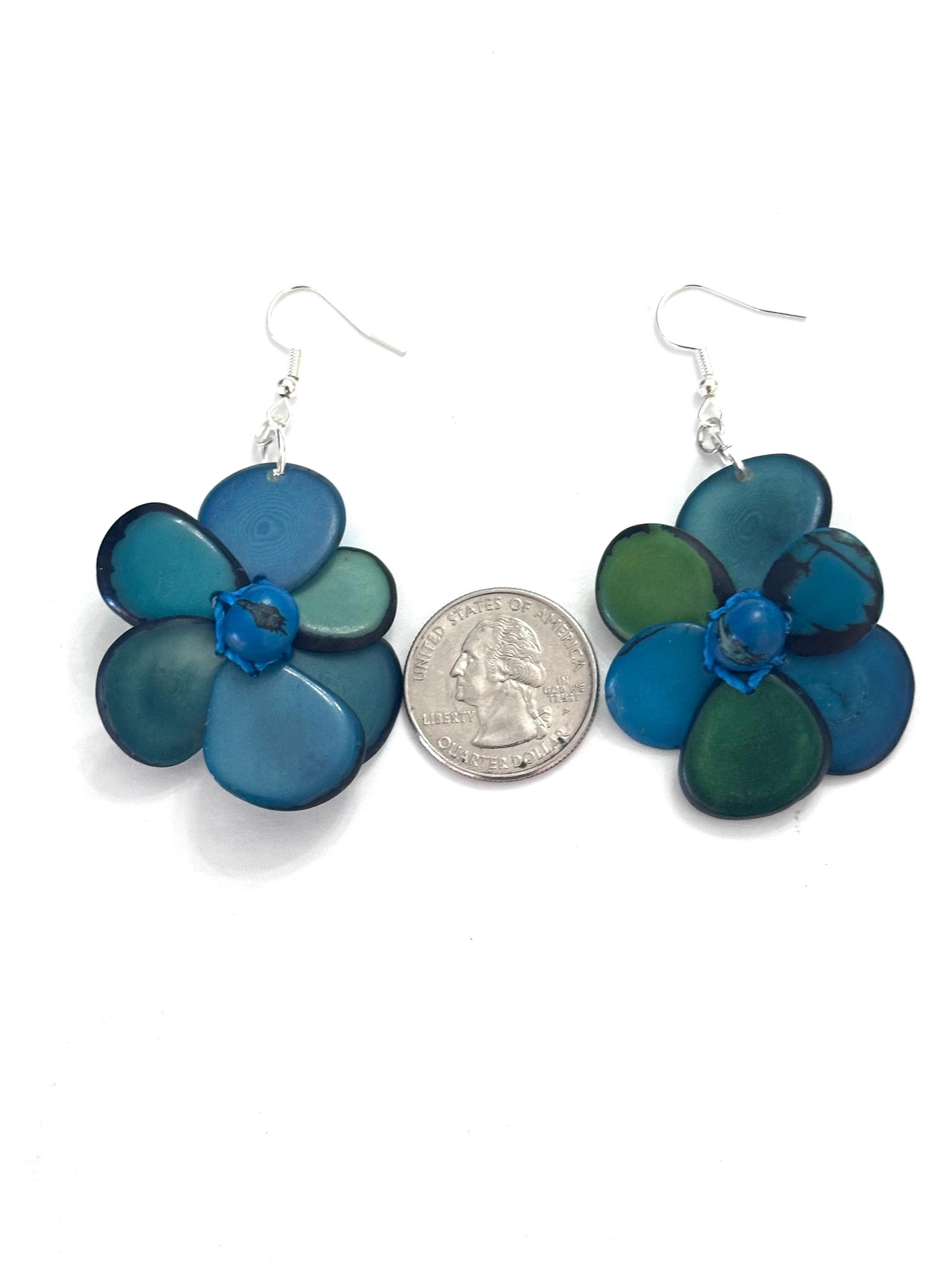 Tagua Nut Flower Design Earrings.