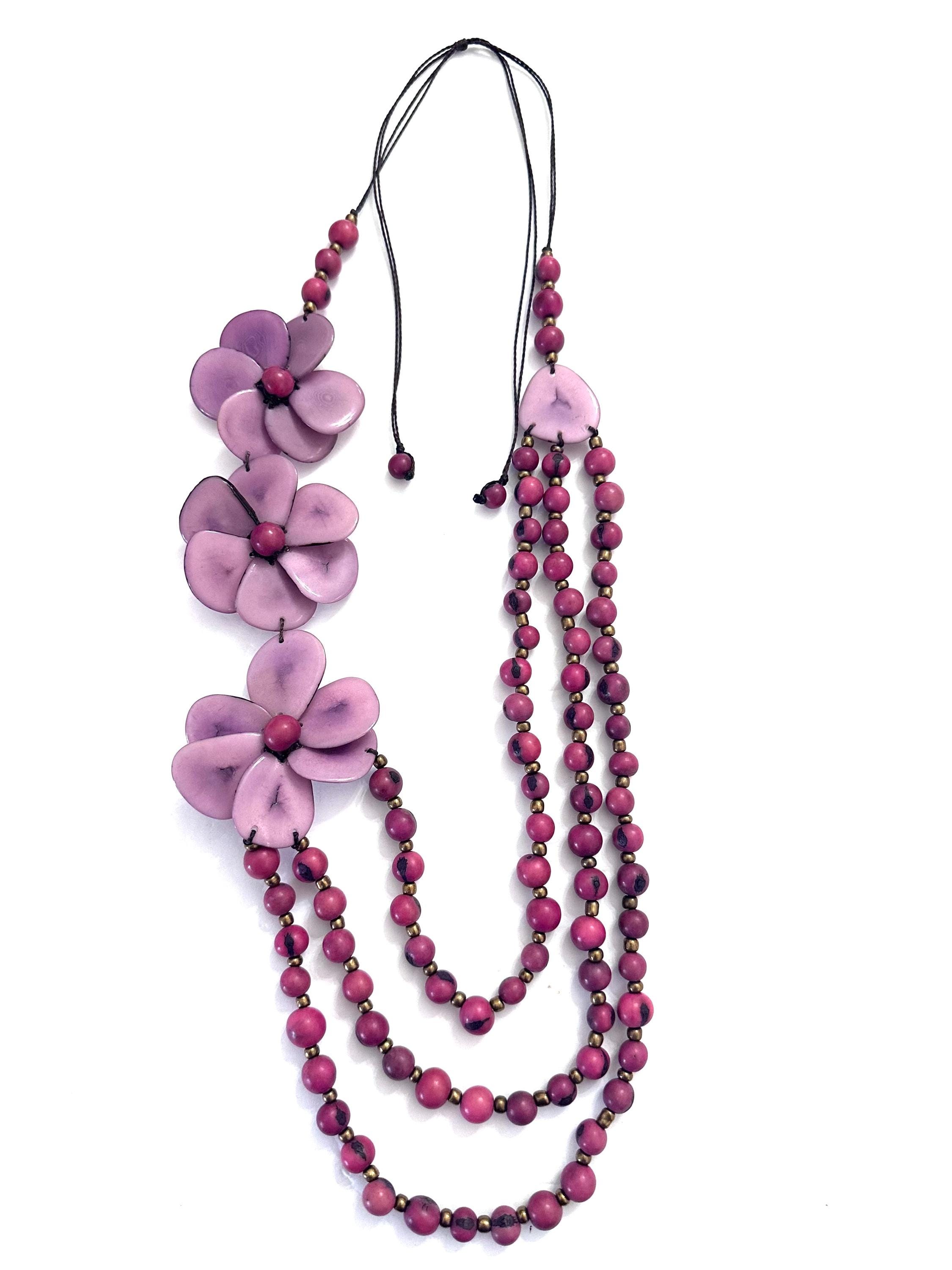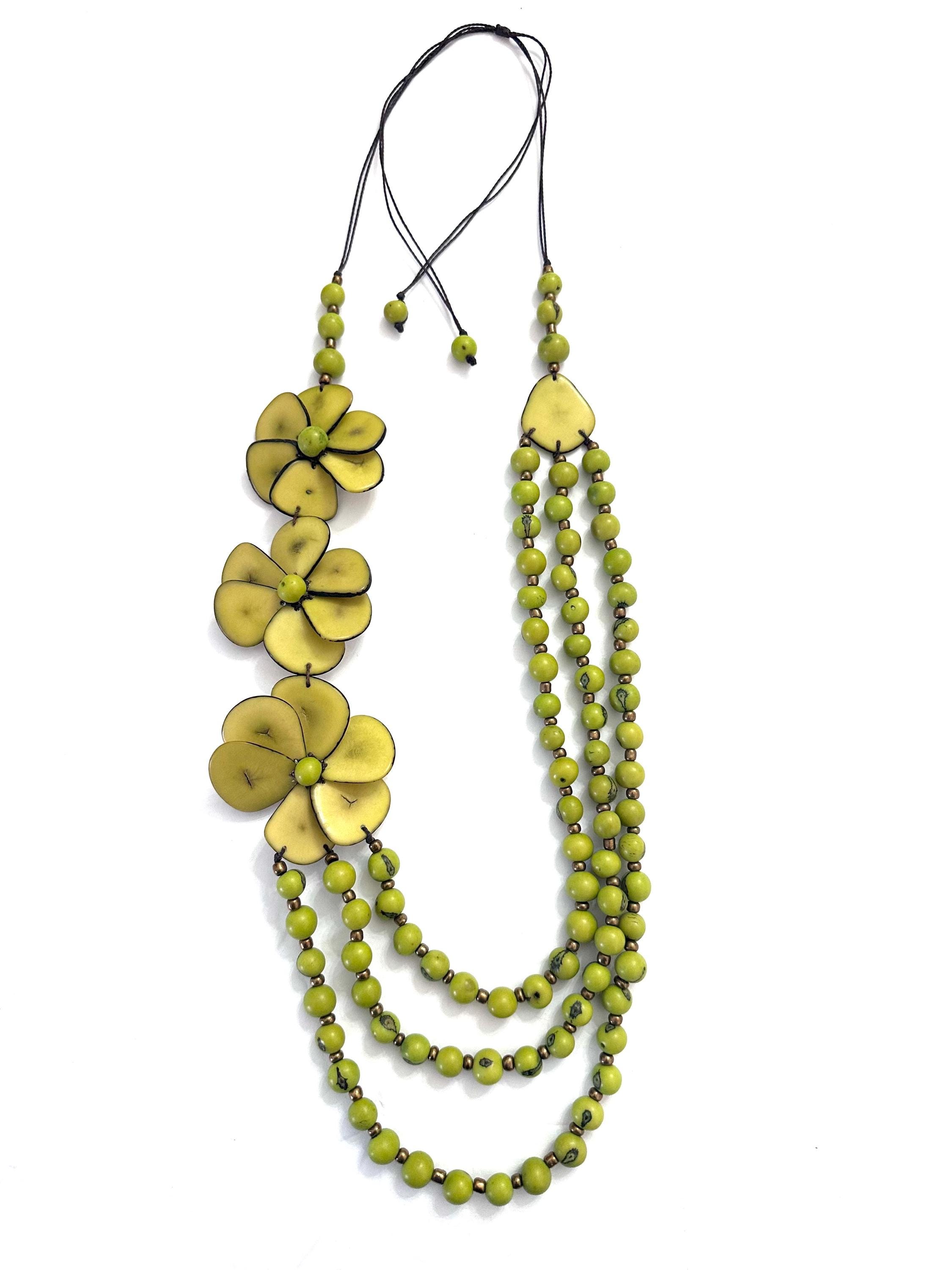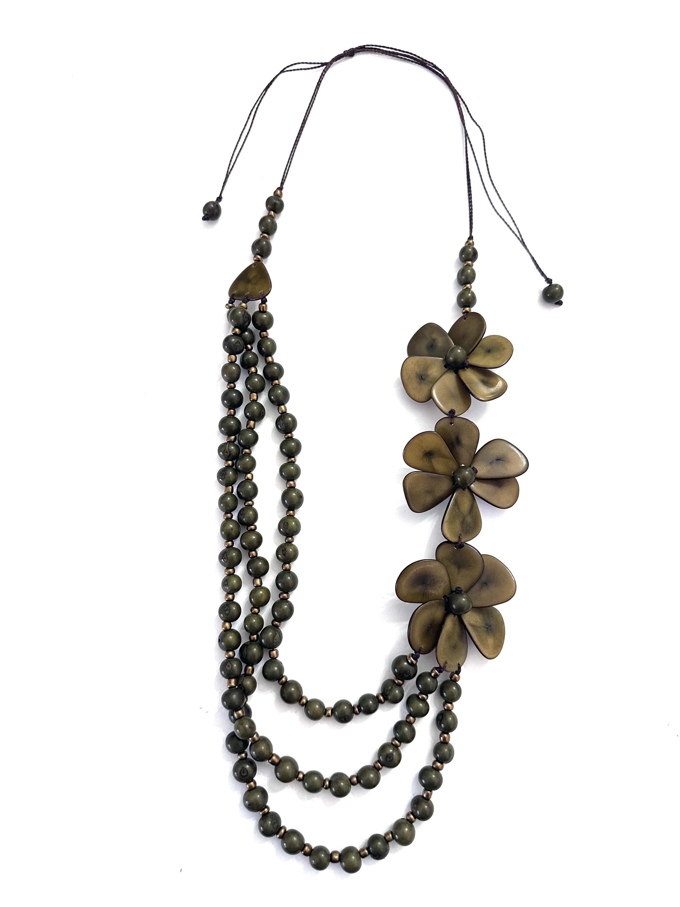 This is a lovely necklace made with tagua beads and acai seeds.