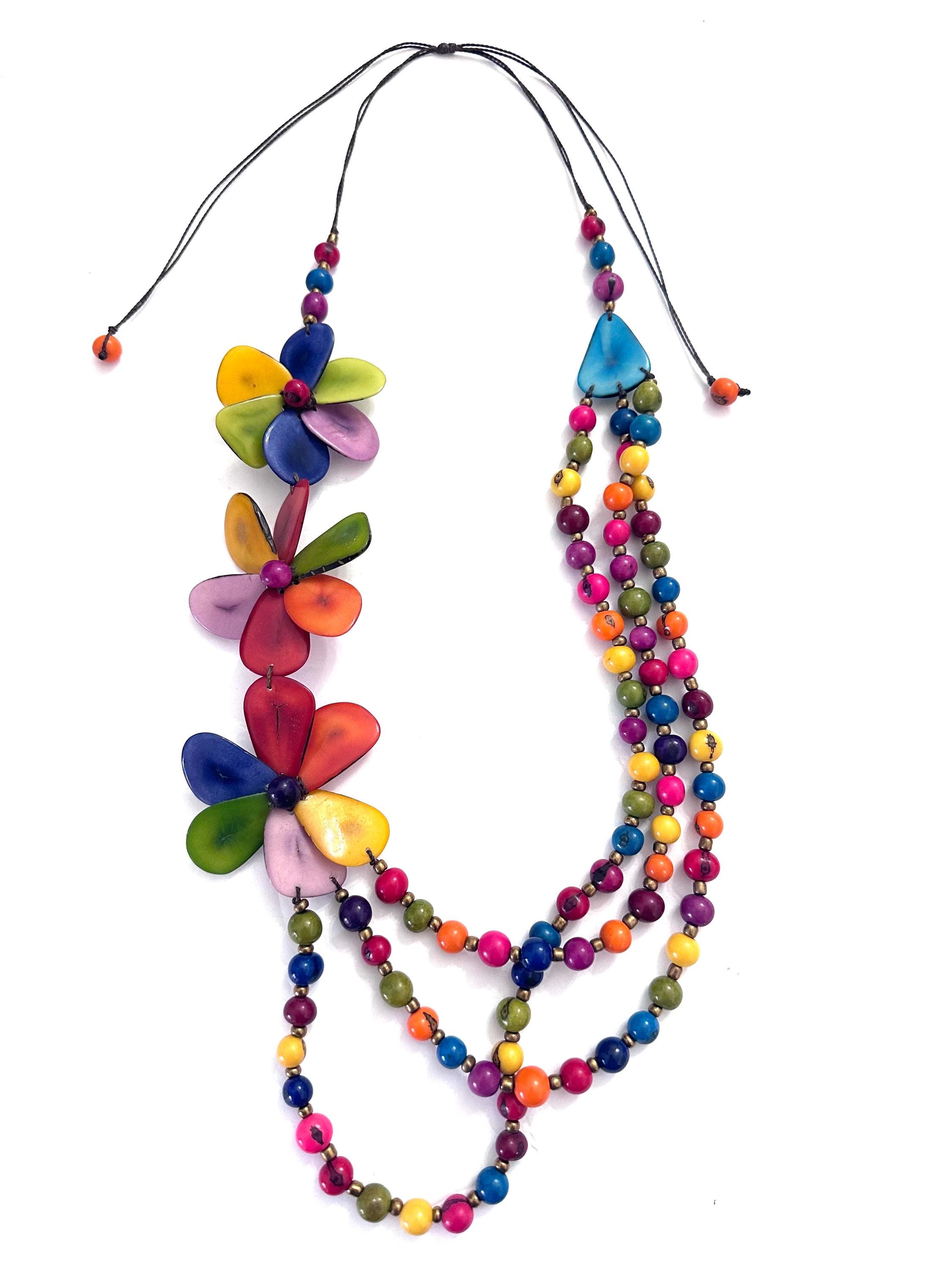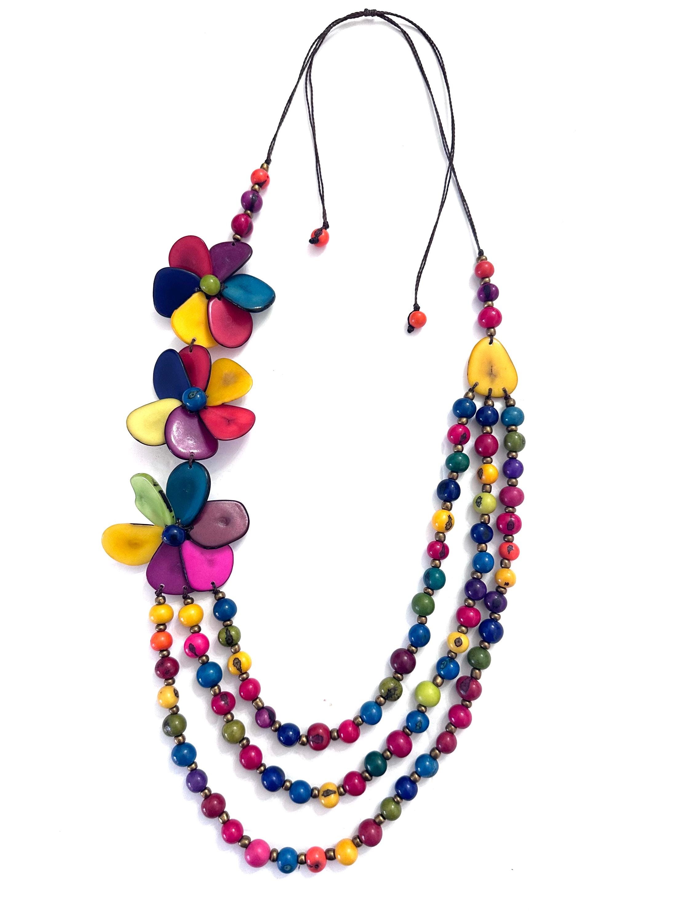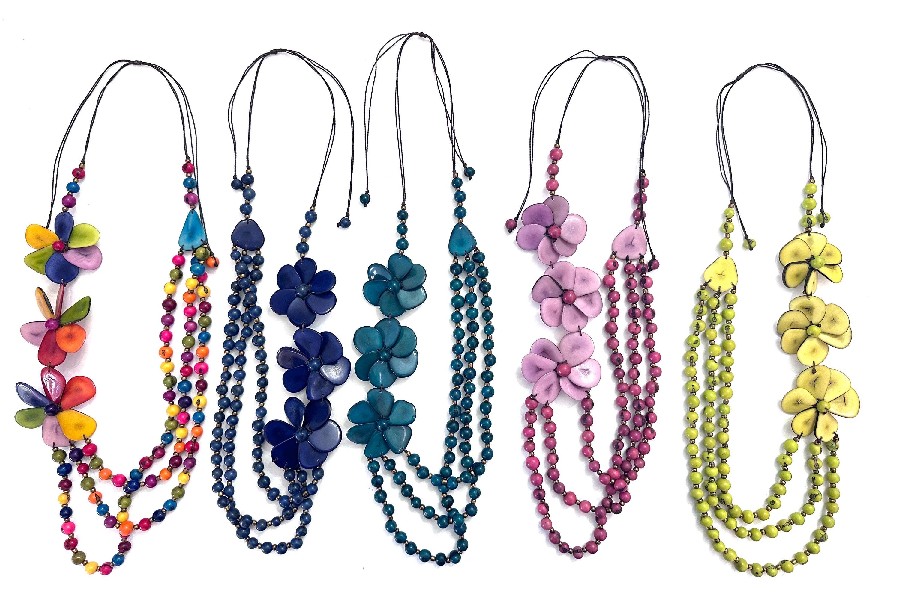 This is a lovely necklace made with tagua beads and acai seeds.