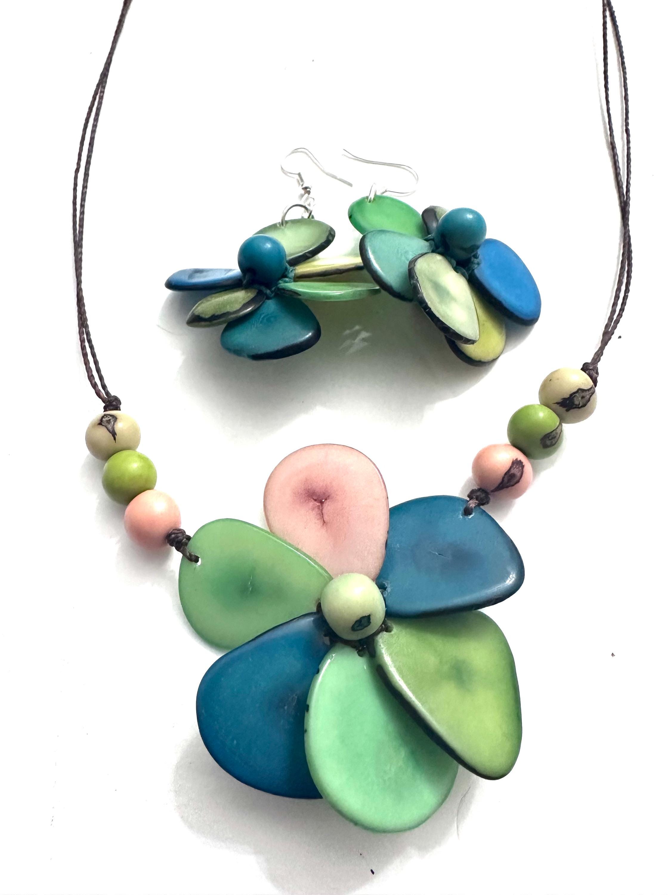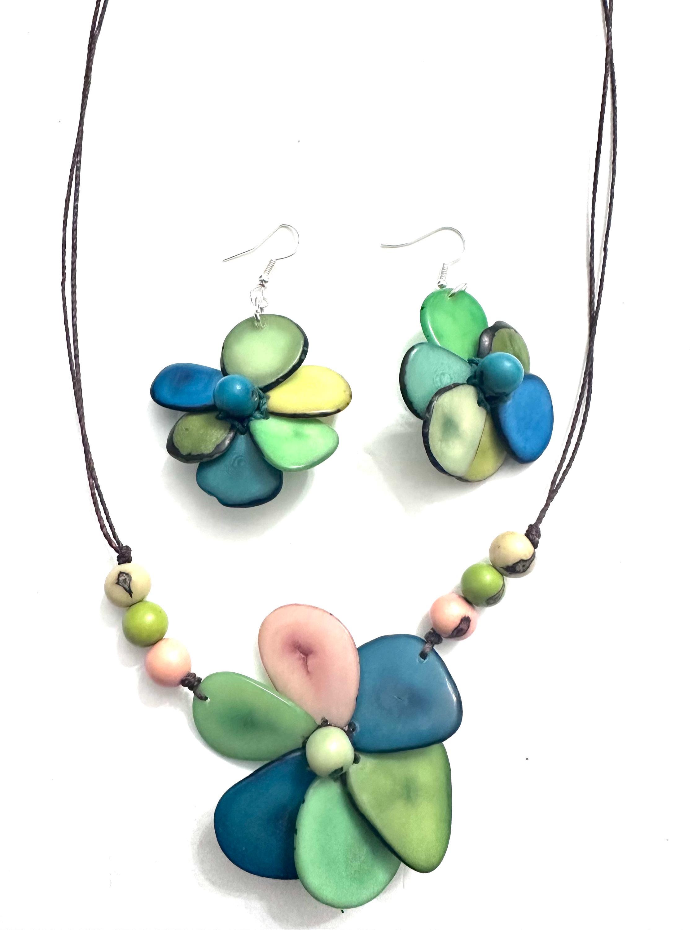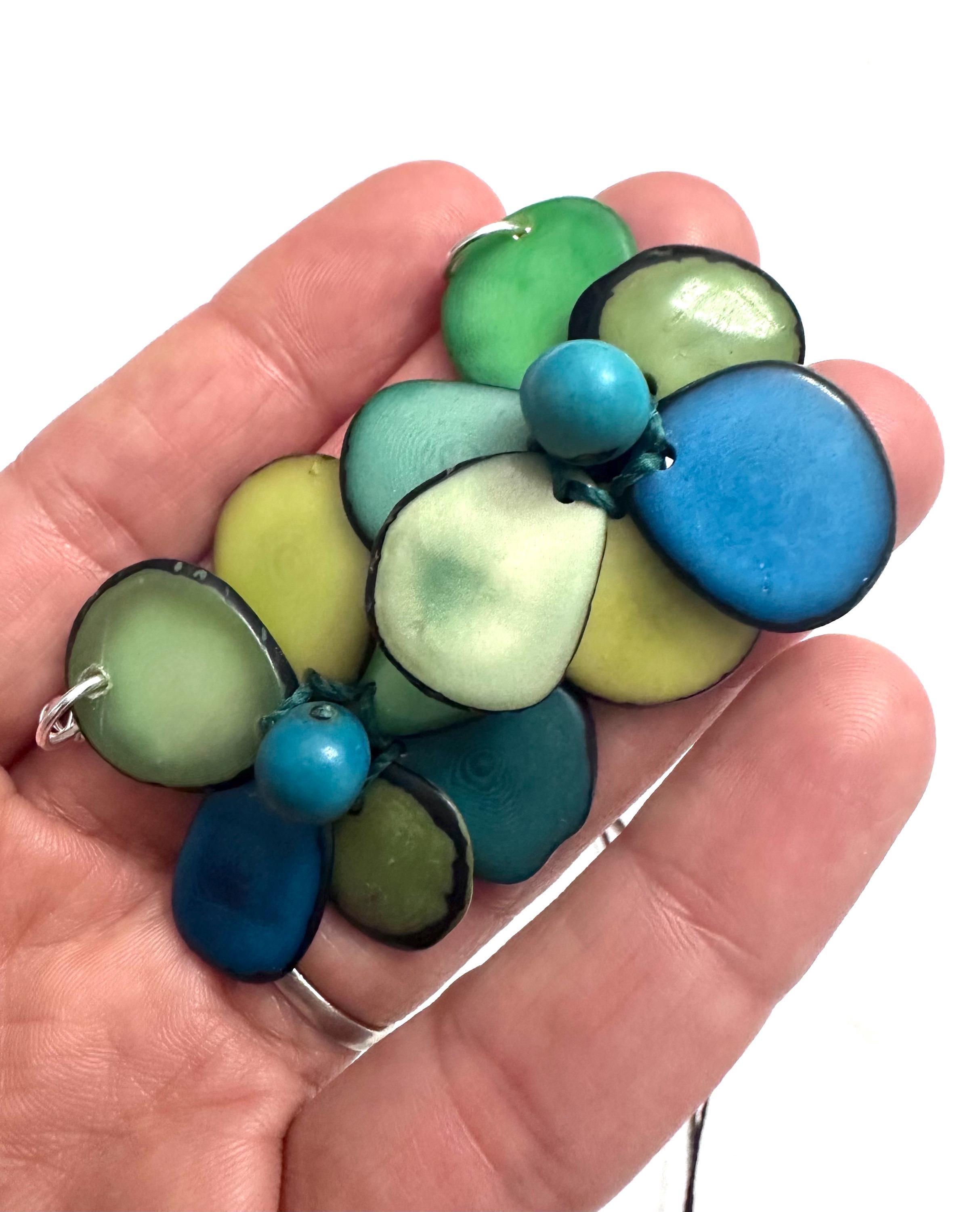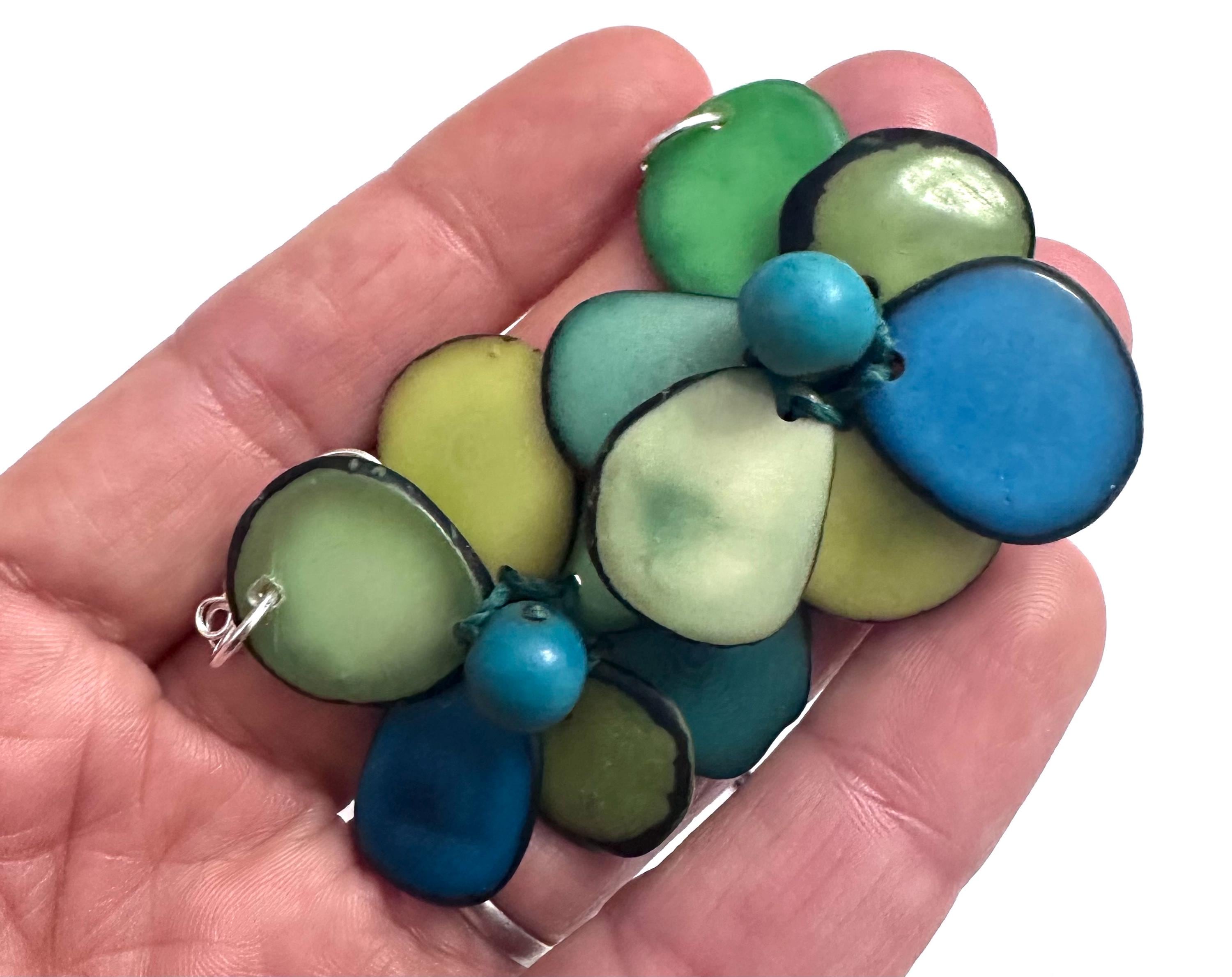 Tagua is an organic nut that comes from palm trees in the Amazon, also known as vegetable ivory. It is is a hard and durable material.
