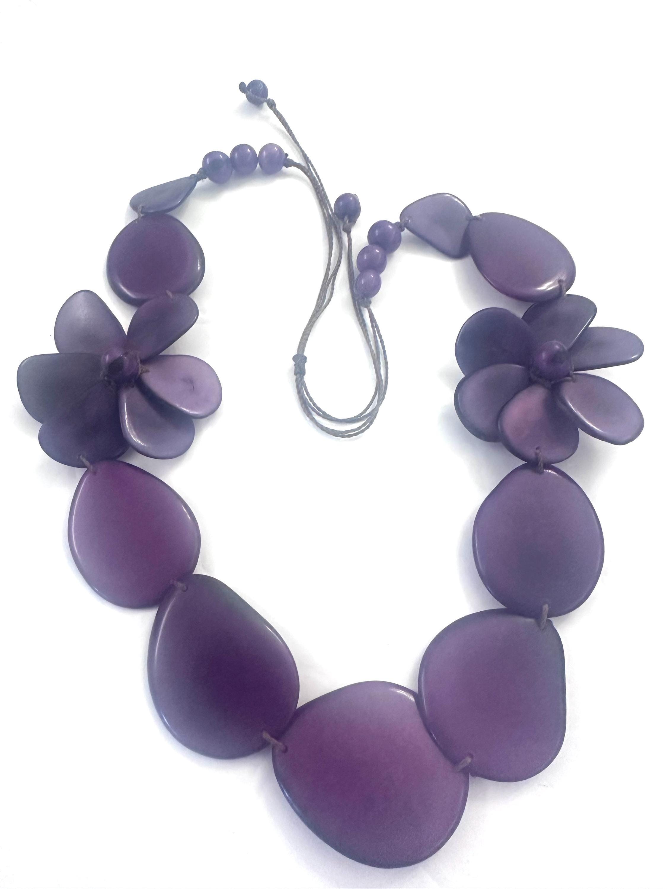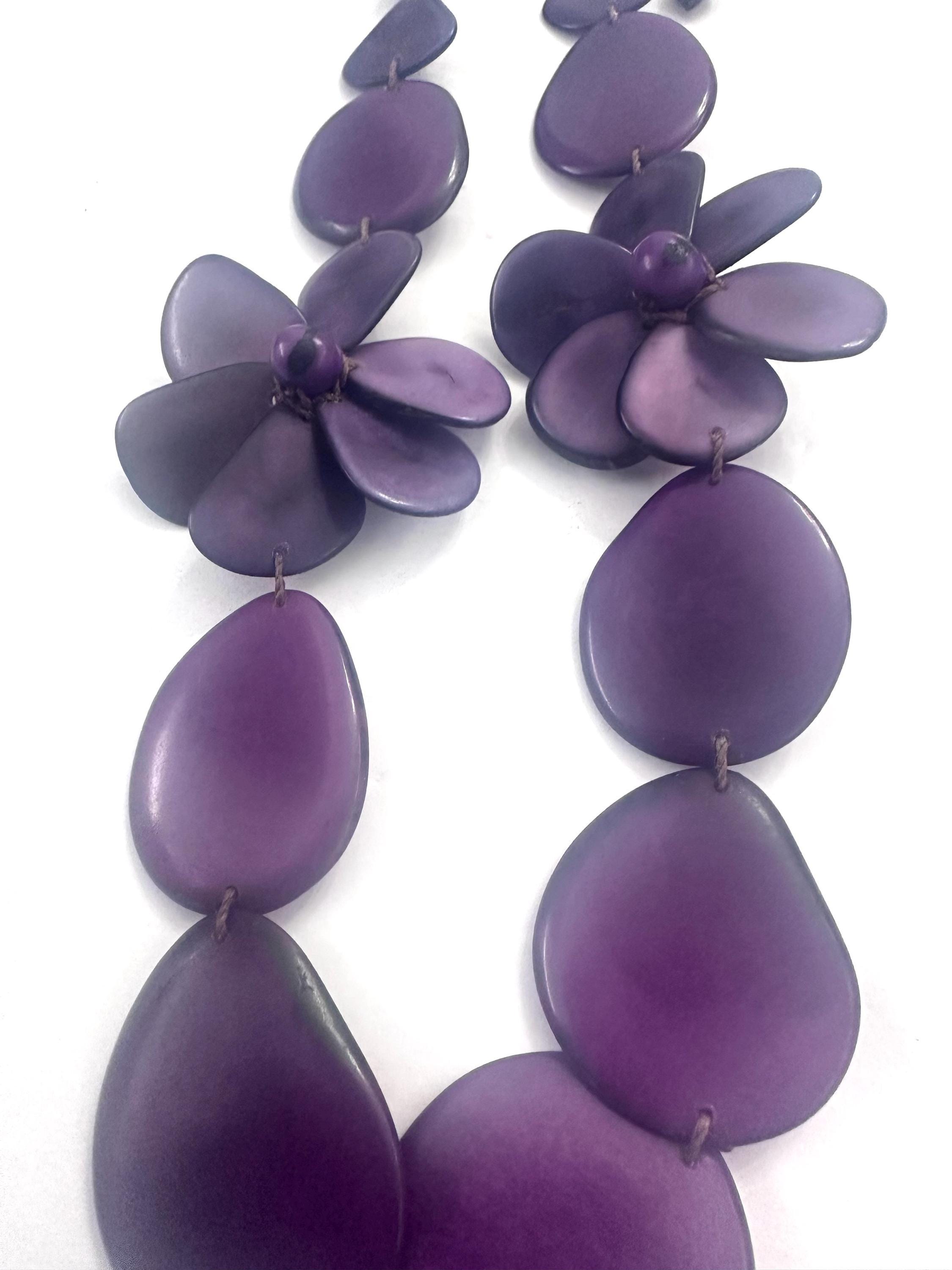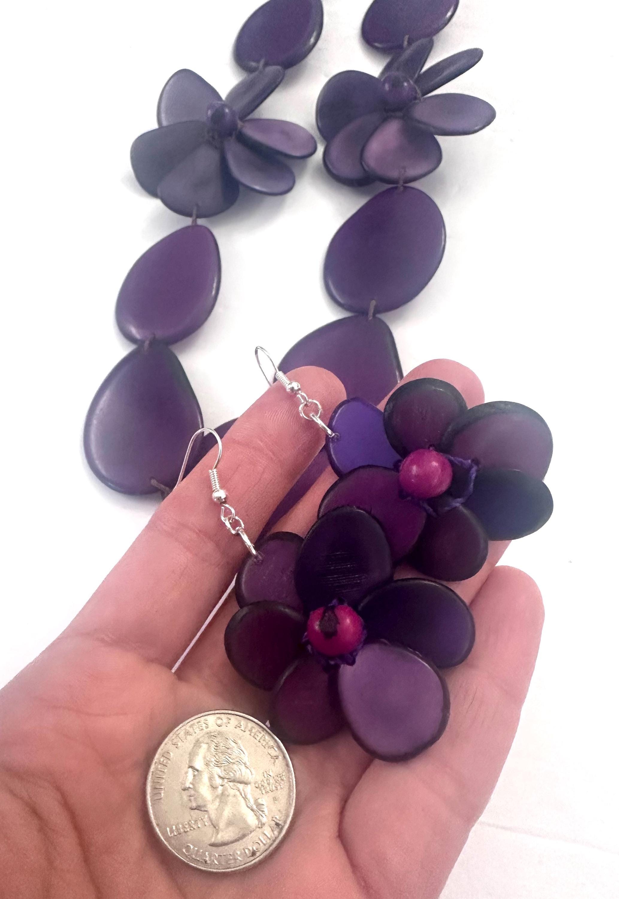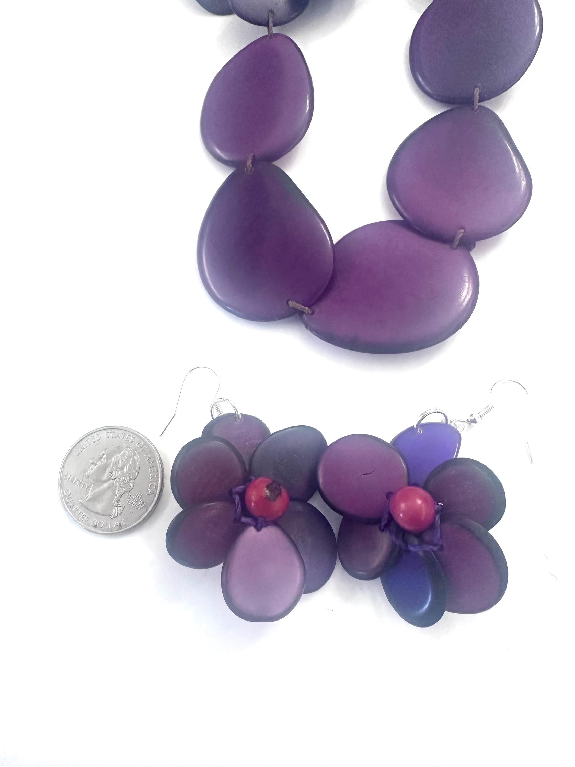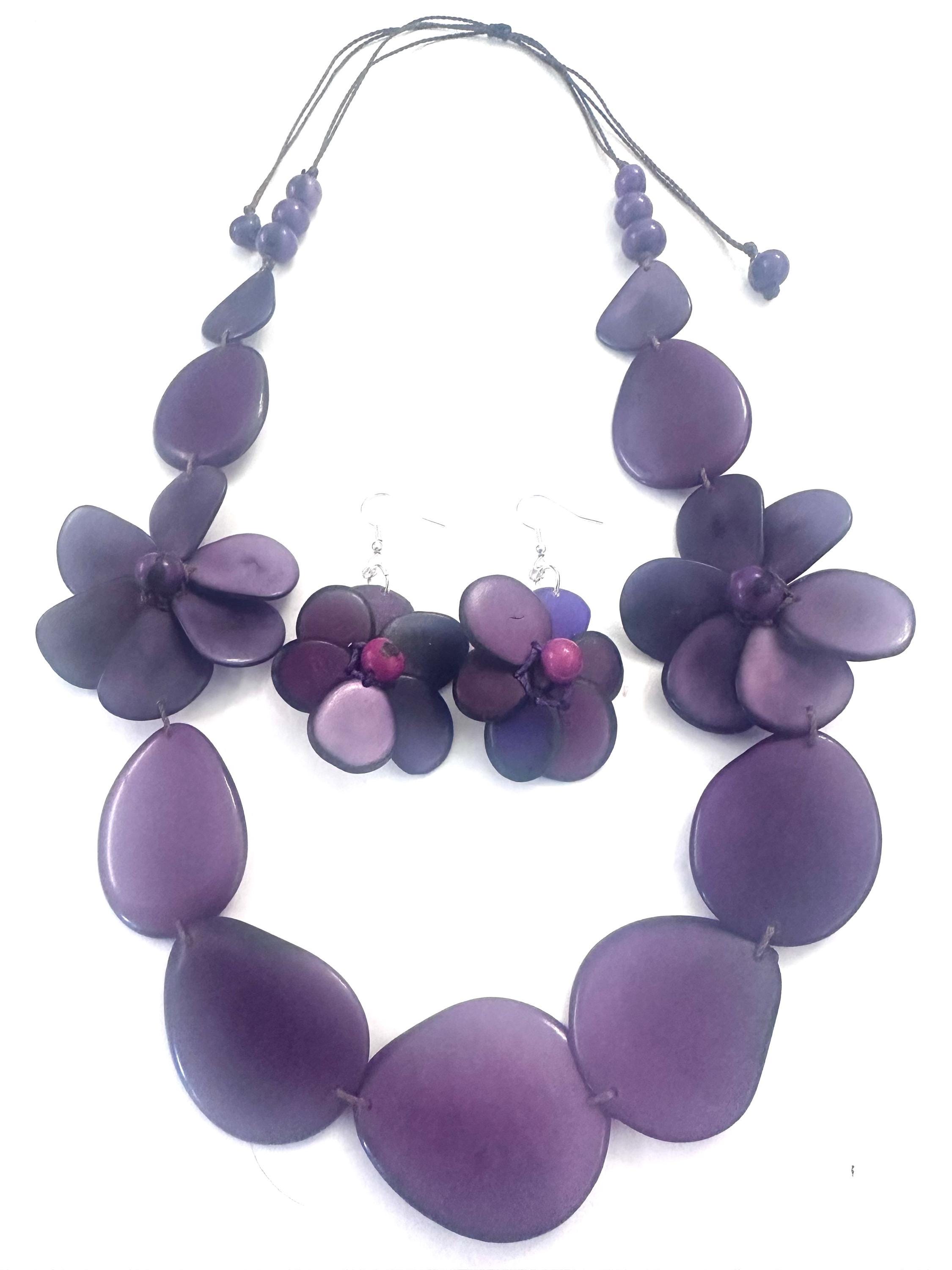 Statement Tagua Necklace and earrings set, it features beautiful flowers made with tagua slices petals on an adjustable string.