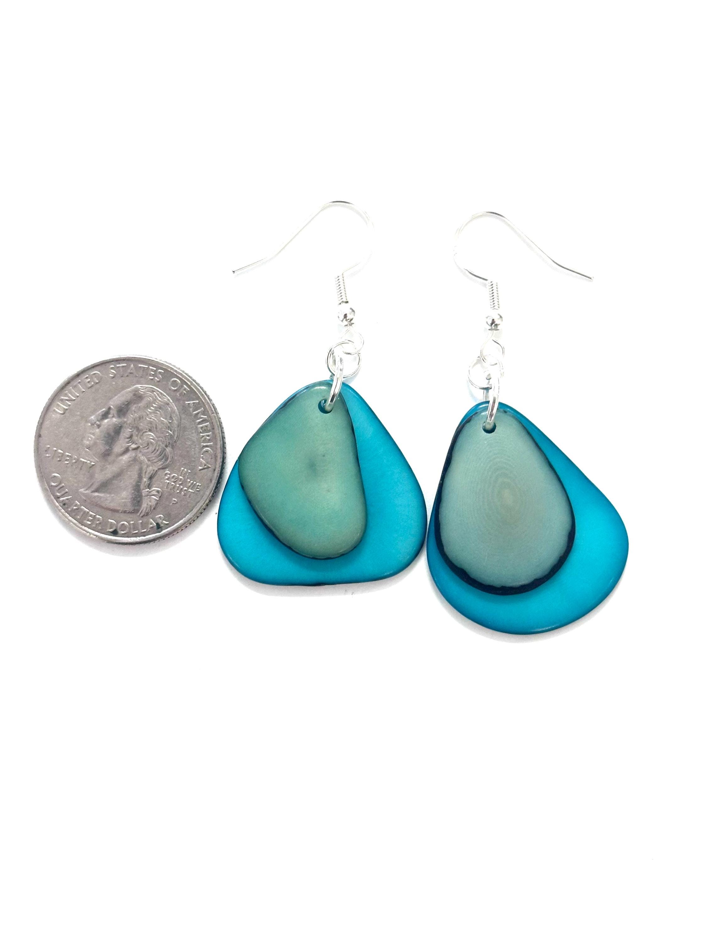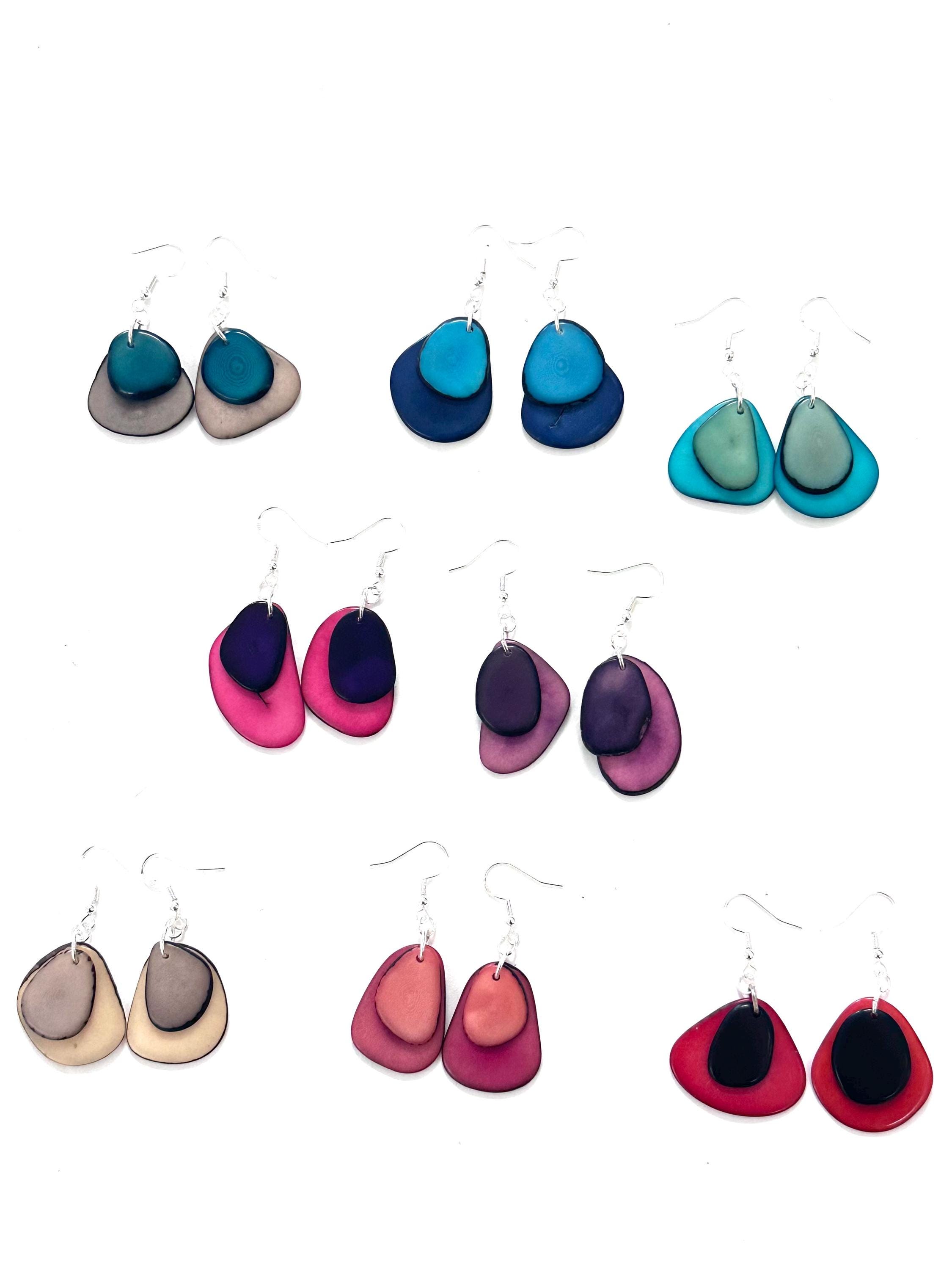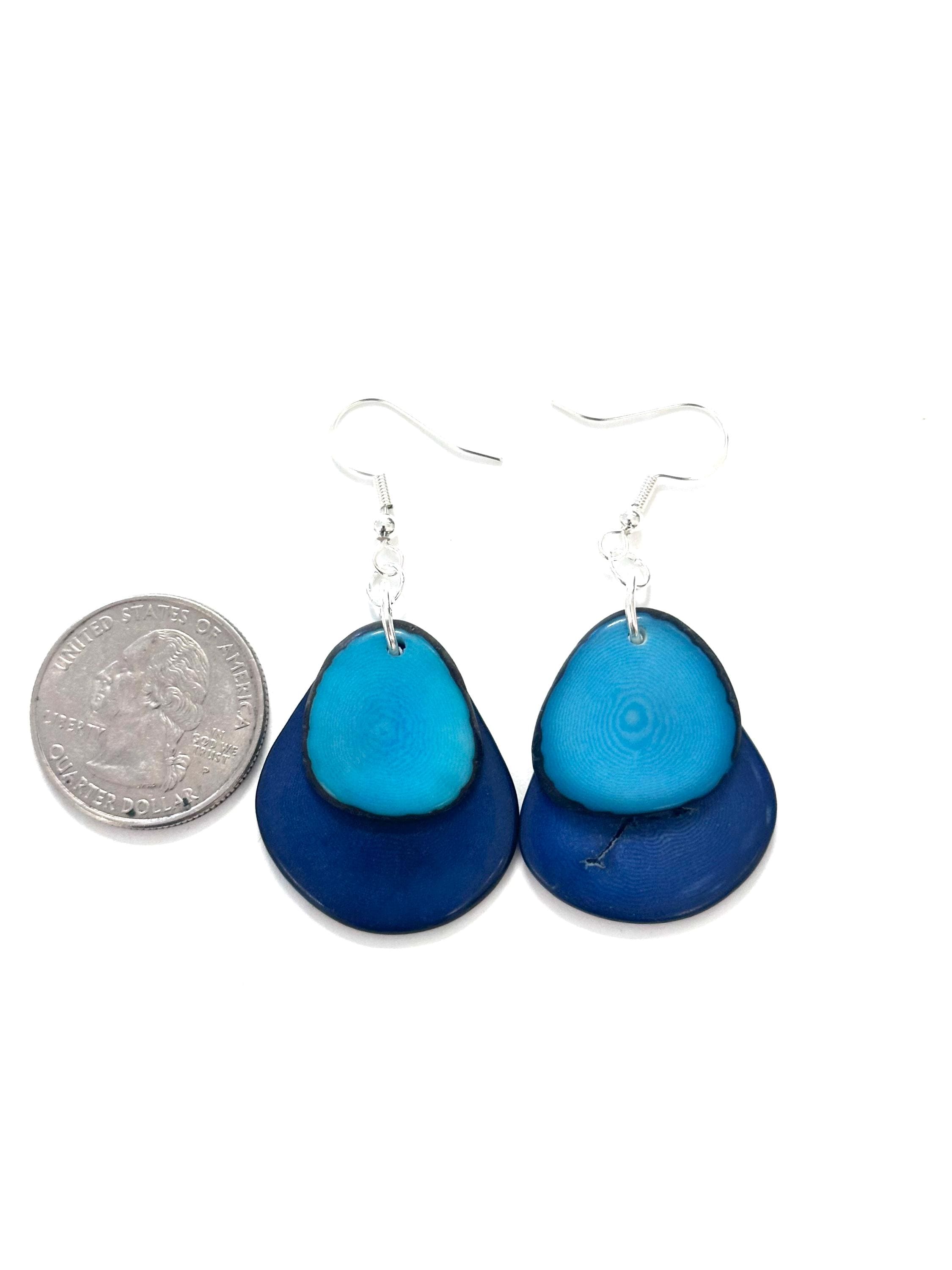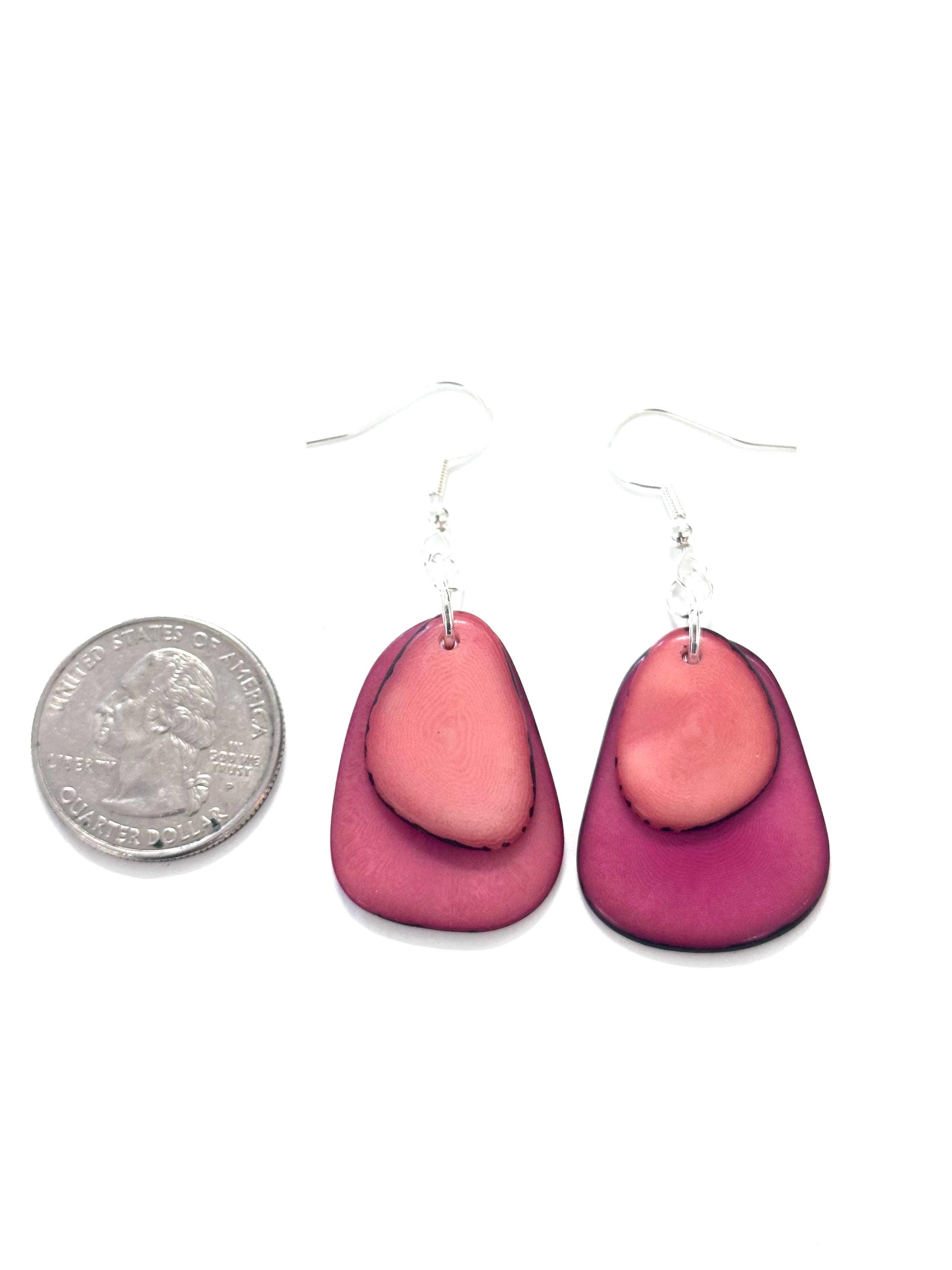 These earrings are made from Tagua nut slices (Vegetable Ivory) hang on silver toned ear wire.