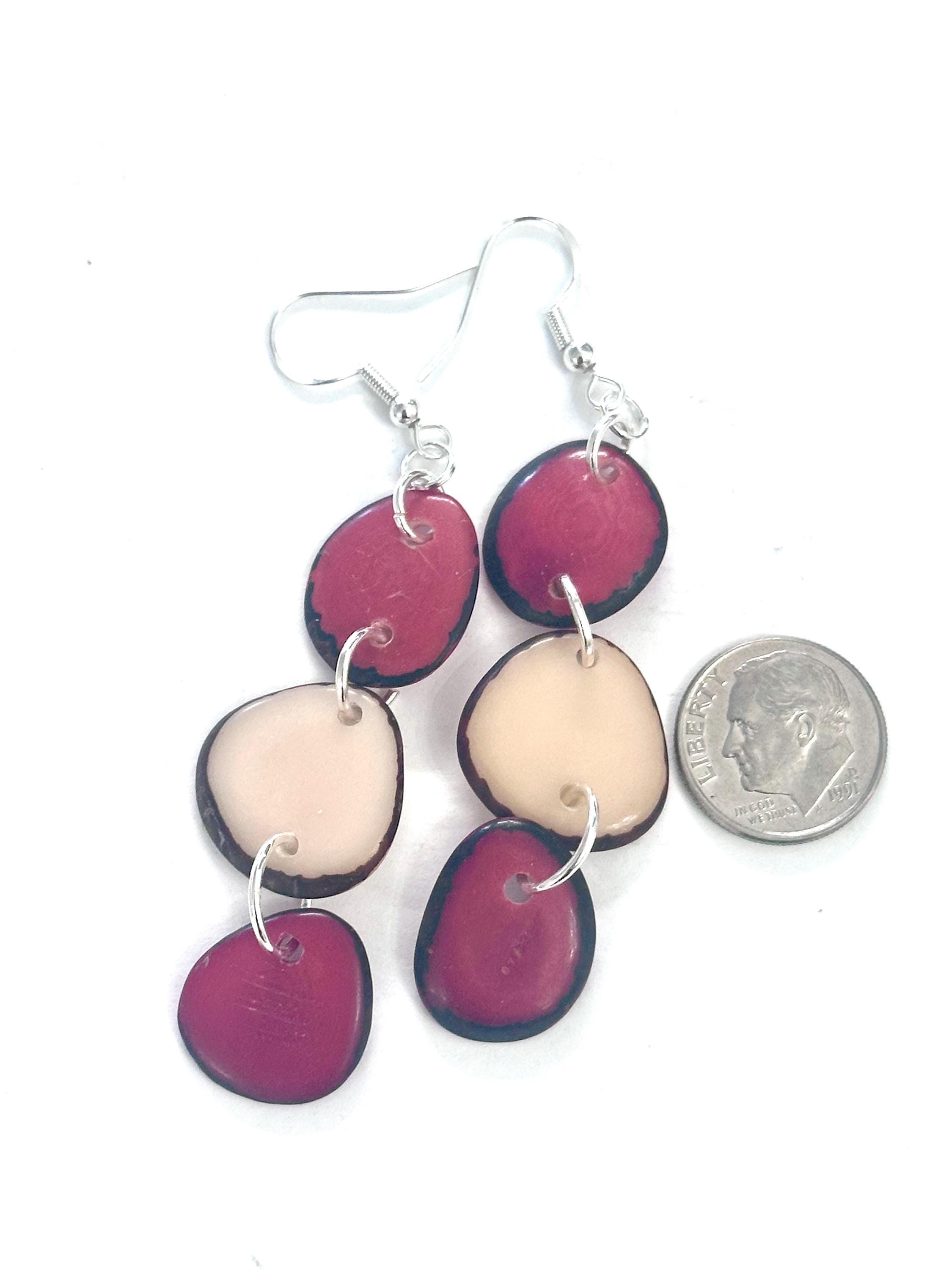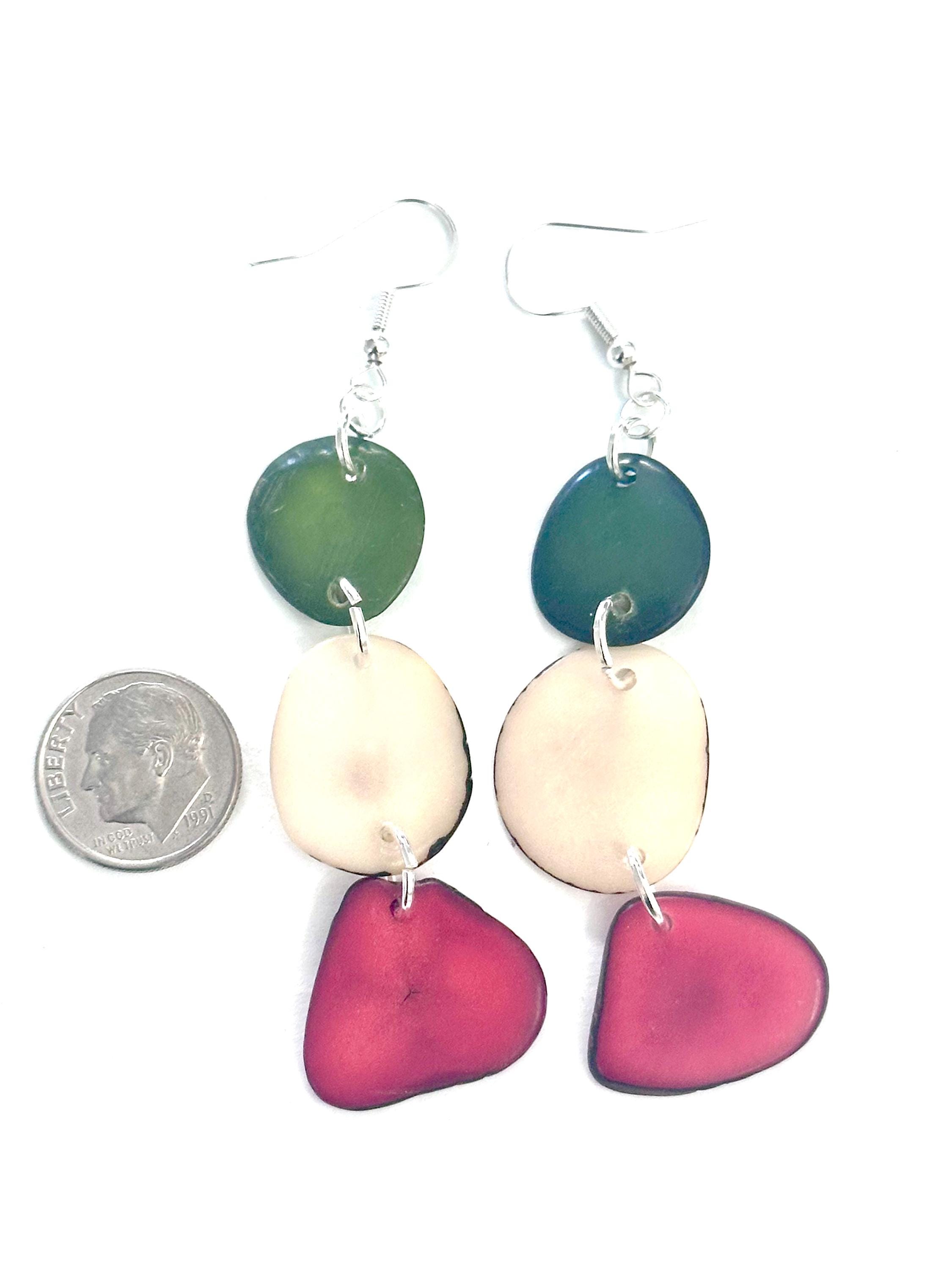 These exclusive dangle earrings are made from Tagua slices hang on silver toned ear wire. I was inspired by the World Cup to create these fun and lovely earrings.